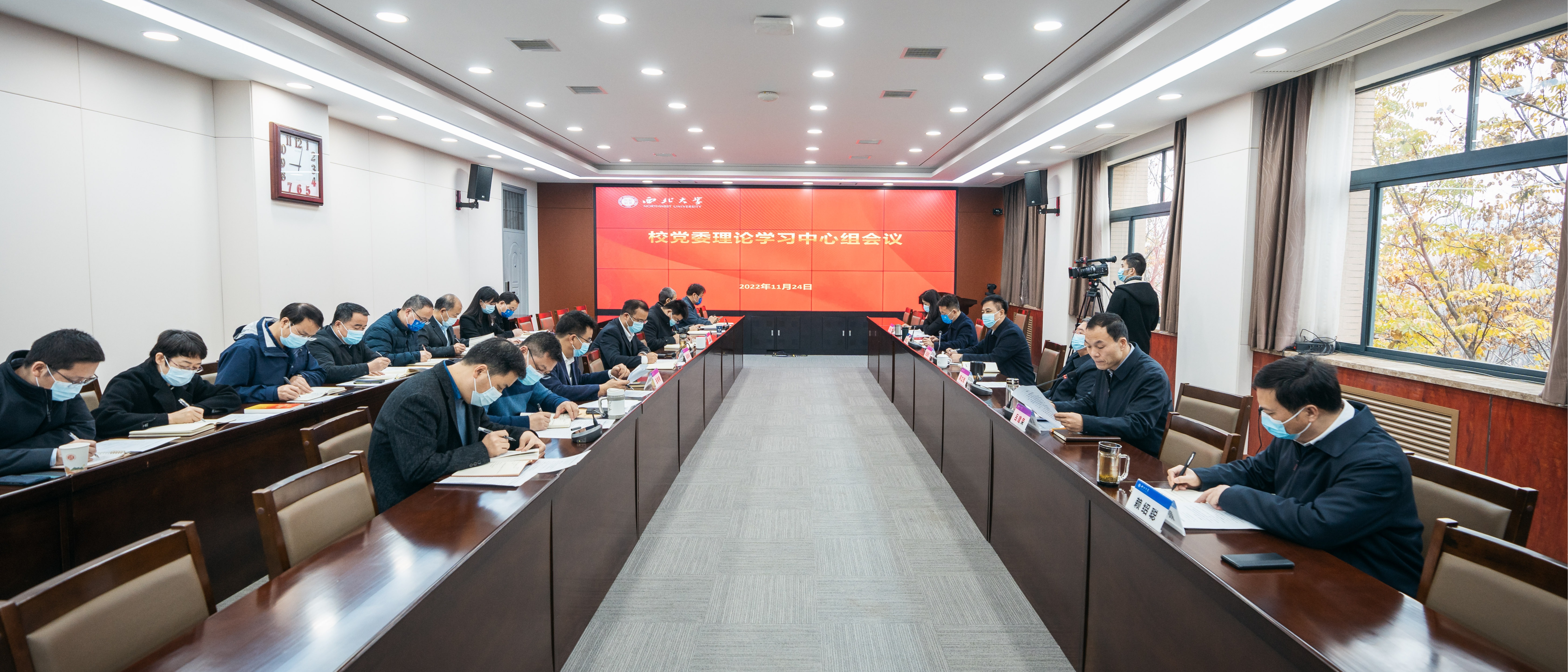 11月24日上午,校党委理论学习中心组在长安校区召开集体学习会议,深化学习党的二十大精神,围绕习近平总书记近期重要讲话精神、中央有关重要文件和省长赵一德在学校建校120周年大会上的讲话精神等进行学习研讨。校党委理论学习中心组成员参加了会议。会议由校党委书记王亚杰主持。会上,校党委副书记吕建荣领学了党的二十大报告第五部分“实施科教兴国战略,强化现代化建设人才支撑”、新一届中央政治局瞻仰延安革命纪念地时习...