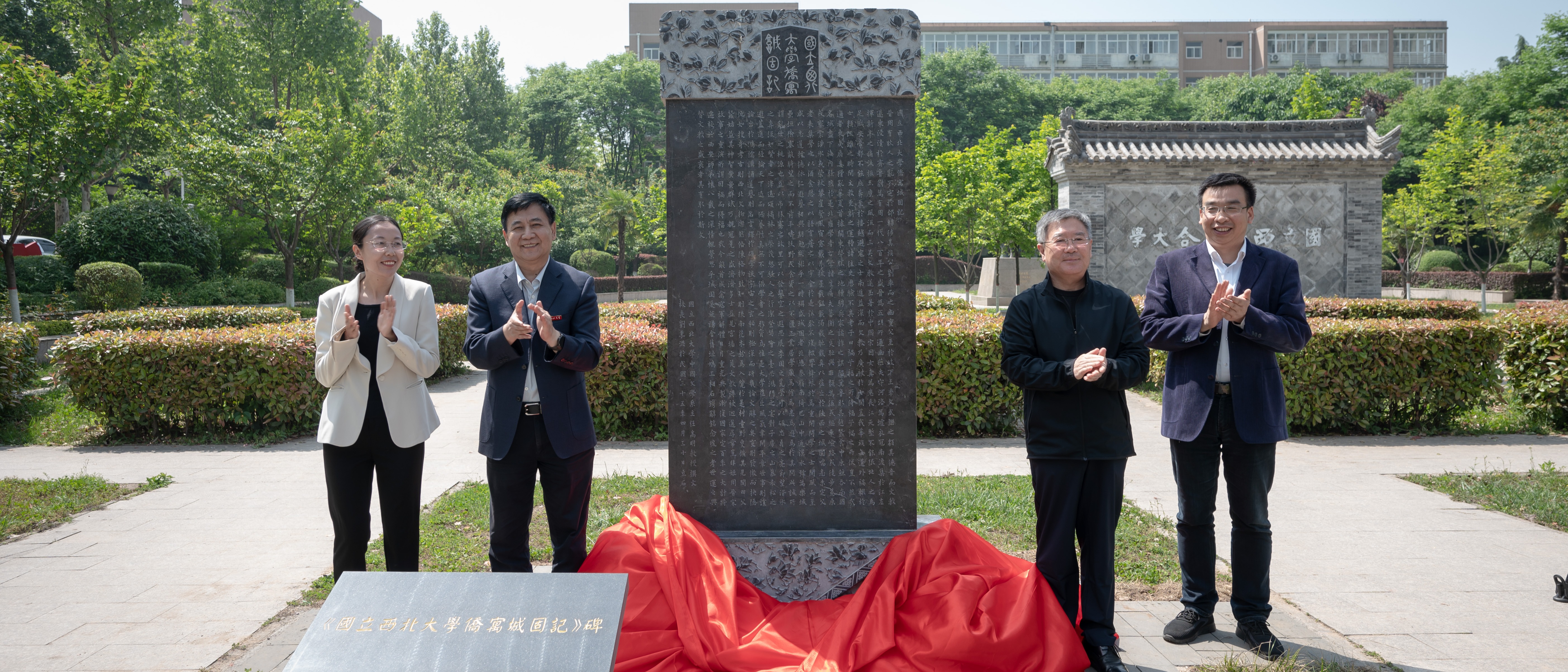 4月27日上午,beat365官网在长安校区举行《国立beat365唯一官网侨寓城固记》纪念碑复立仪式。校党委书记王亚杰,校长郭立宏,校党委常委、宣传部部长田明纲,校史专家姚远编审,参与创作的刘卫平、岳峰教授,校友代表田苗及学校相关部门负责人参加仪式。仪式由校党委常委、副校长、120周年校庆工作总指挥常江主持。仪式上,王亚杰、郭立宏、田明纲、田苗共同为纪念碑揭幕,王亚杰代表学校向田苗颁发捐赠证书,姚远介绍了《国立beat365唯一官网侨寓城...