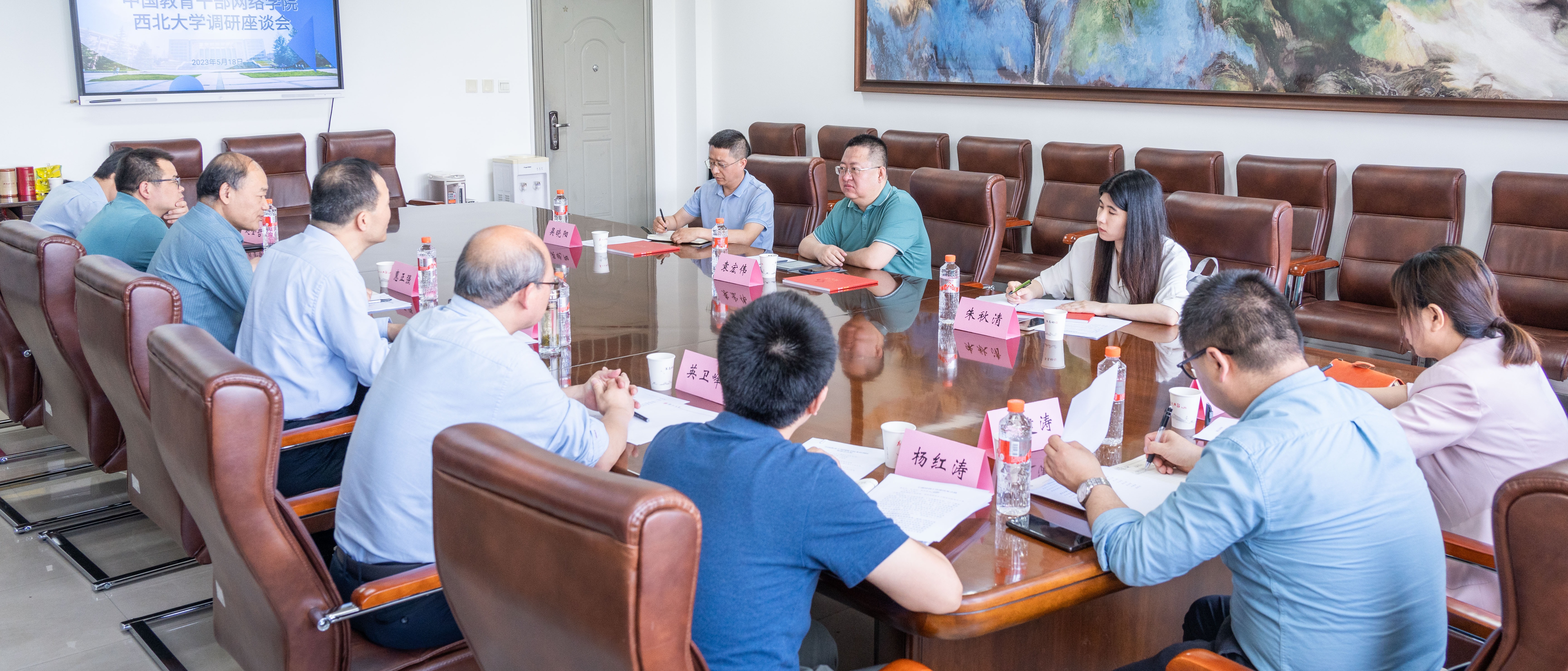 5月18日上午,中国教育干部网络学院高教项目事业部主任袁宏伟一行来校调研网络培训工作。校党委副书记吕建荣出席并主持座谈会,党(校)办、组织部、教工部、学工部、研工部、职继学院、教师发展中心相关负责人参加座谈。吕建荣对中国教育干部网络学院调研组表示欢迎,介绍了学校的办学历史和发展成效。他指出,中国教育干部网络学院拥有高水平的优质课程资源和丰富的网络培训经验,是中国网络教育领域的“黄埔军校”。中国教育...