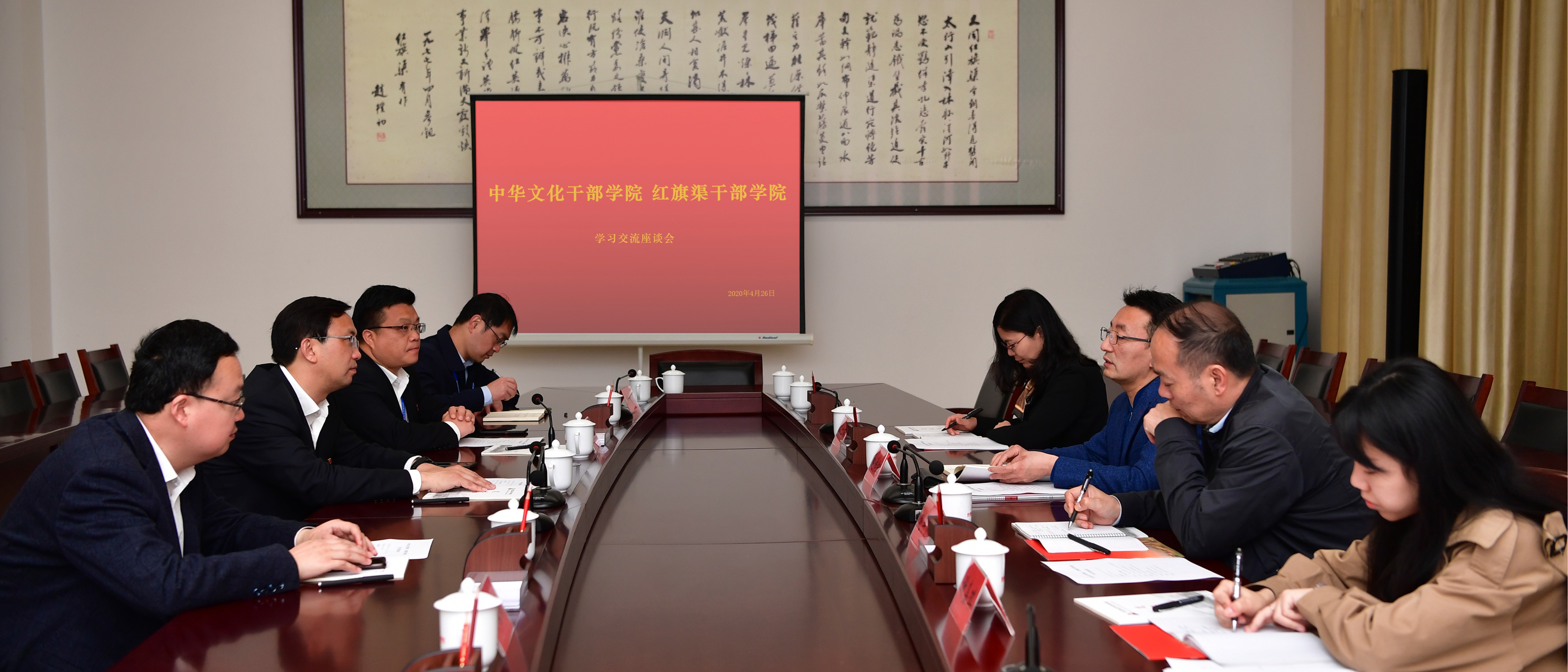 4月25日至26日,beat365官网党委副书记、中华文化干部学院院长赵作纽一行4人赴红旗渠干部学院调研干部教育培训工作。赵作纽一行先后赴红旗渠纪念馆、红旗渠青年洞等现场教学点,听取现场授课,学习了解了红旗渠的建设历史,对自力更生、艰苦创业、团结协作、无私奉献的红旗渠精神有了更加深刻的认识和感悟。在26日上午的座谈会上,红旗渠干部学院党委委员、常务副院长刘建勇详细介绍了红旗渠干部学院以党性教育为主题开展干部教育培训...