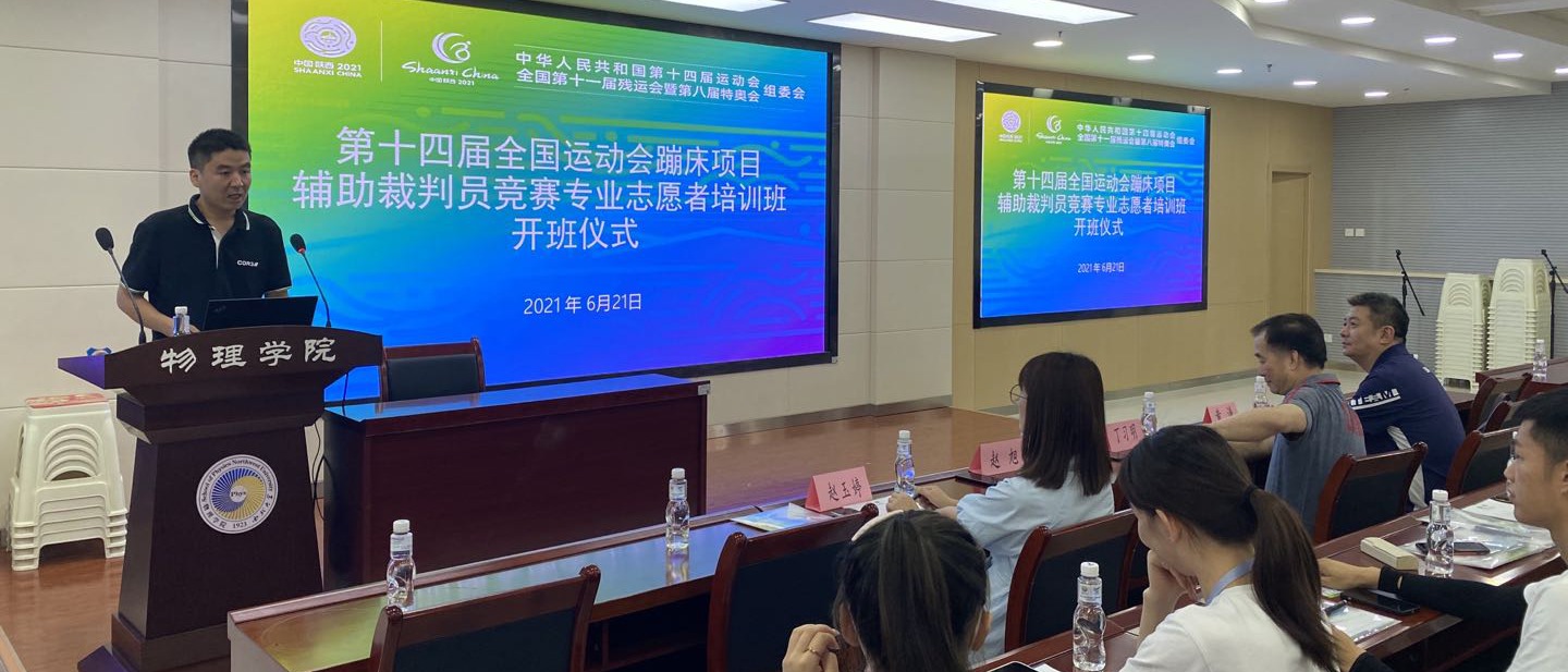 6月21日上午,第十四届全国运动会蹦床项目辅助裁判员和竞赛专业志愿者培训在beat365官网长安校区举办。十四运会蹦床项目测试赛裁判长、南京体育学院教授丁习明为竞赛专业志愿者进行培训。陕西省体操运动管理中心副主任赵旭主持开班仪式,本次比赛裁判组全体成员参加开班仪式,十四运会蹦床项目辅助裁判员、专业志愿者约90人参加了此次培训。丁习明首先介绍了蹦床运动在国际国内的开展情况,随后从竞赛的场地布置、器材配备;竞赛组织各...