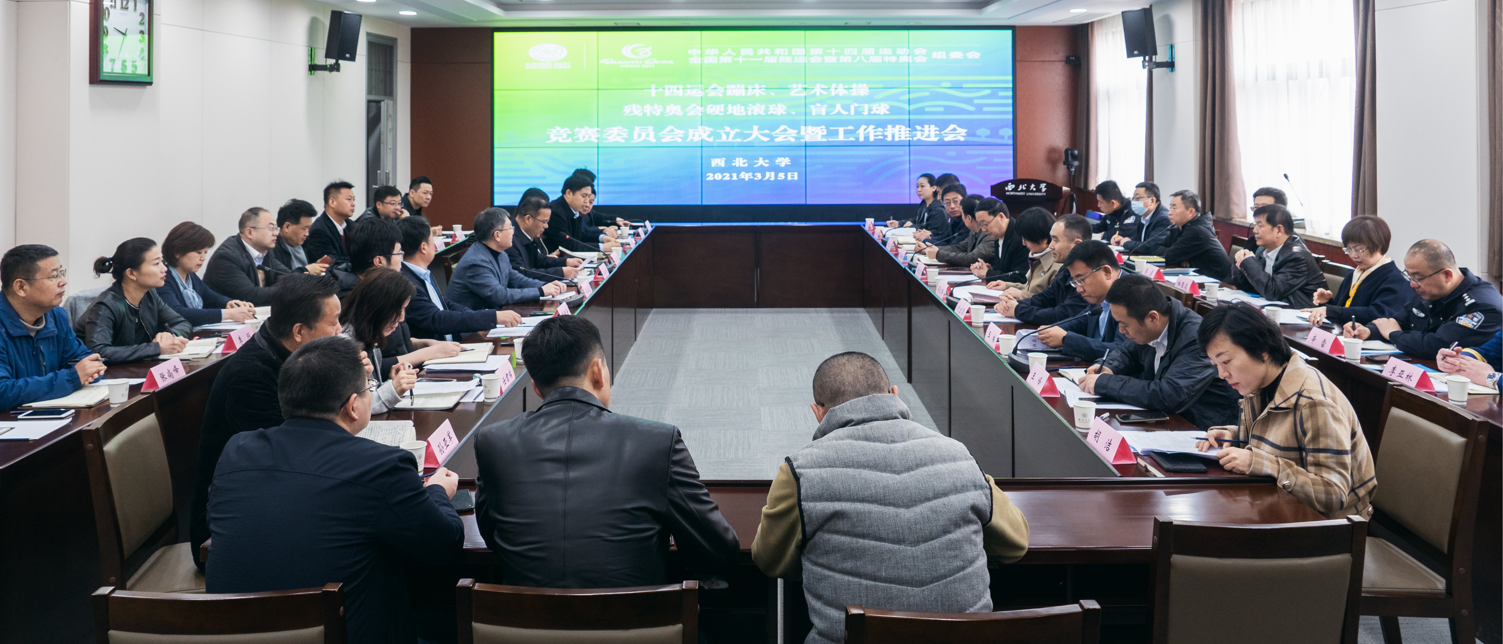 3月5日上午,学校在长安校区召开第十四届全国运动会蹦床、艺术体操及第八届残特奥会硬地滚球、盲人门球竞赛委员会成立大会暨工作推进会。校长郭立宏、省残联二级巡视员李文龙、长安区副区长梁文辉、省教育厅体卫艺处处长刘宏恩、省社会体育运动发展中心主任王劲松、十四运会组委会竞赛组织部竞委会处处长温宏、省体操运动管理中心副主任赵旭,长安区以及学校相关职能部门负责人参加会议。会议由校党委常委、副校长奚家米主持。会...