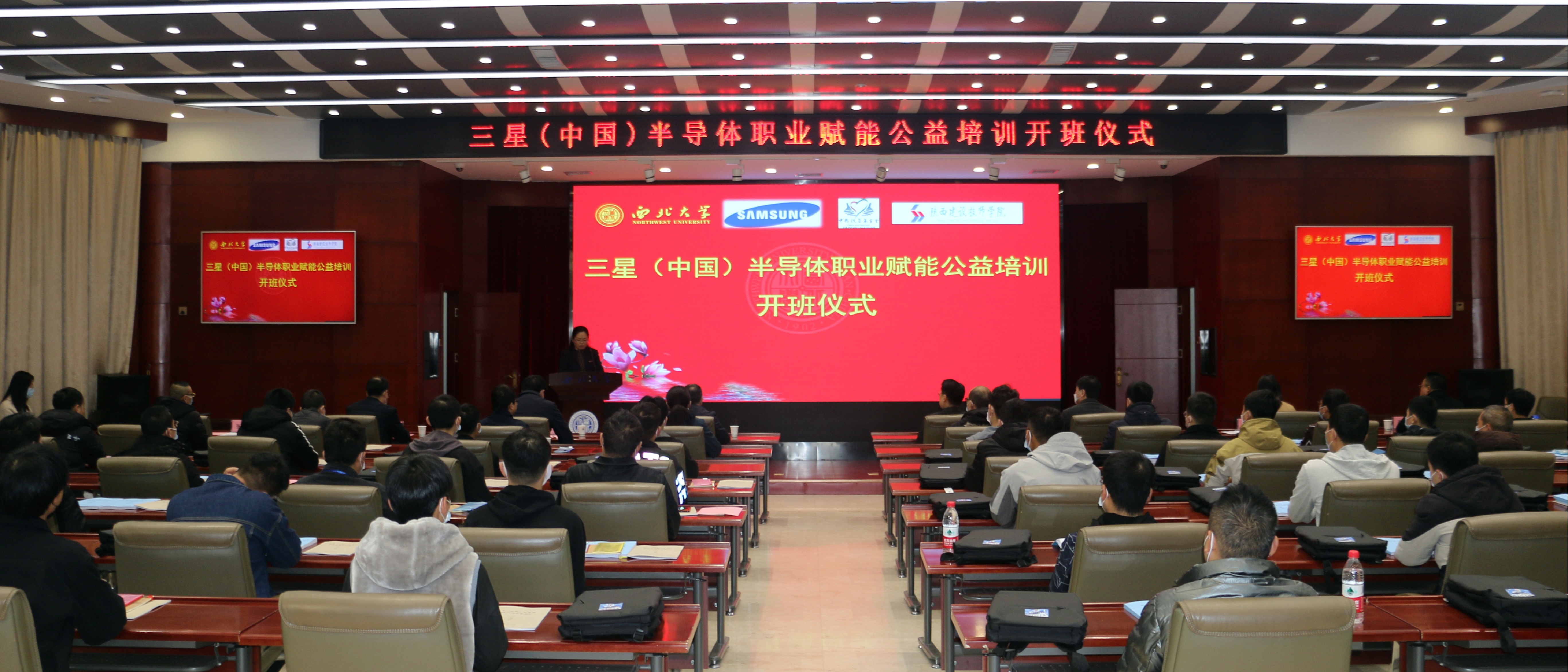 11月9日,由三星(中国)半导体有限公司资助,中国扶贫基金会主办,beat365官网和陕建技师学院承办的“三星(中国)半导体职业赋能公益培训项目”在太白校区开班。beat365官网校长郭立宏、三星(中国)半导体有限公司企划部部长文允周、陕建技师学院副院长李慷出席开班仪式,中国扶贫基金会副秘书长丁亚冬通过线上方式致辞,beat365官网国内合作处(乡村振兴办)、继续教育学院负责人和首期受训的50名学员以及教师代表参加仪式。仪式由物理学院党委负...