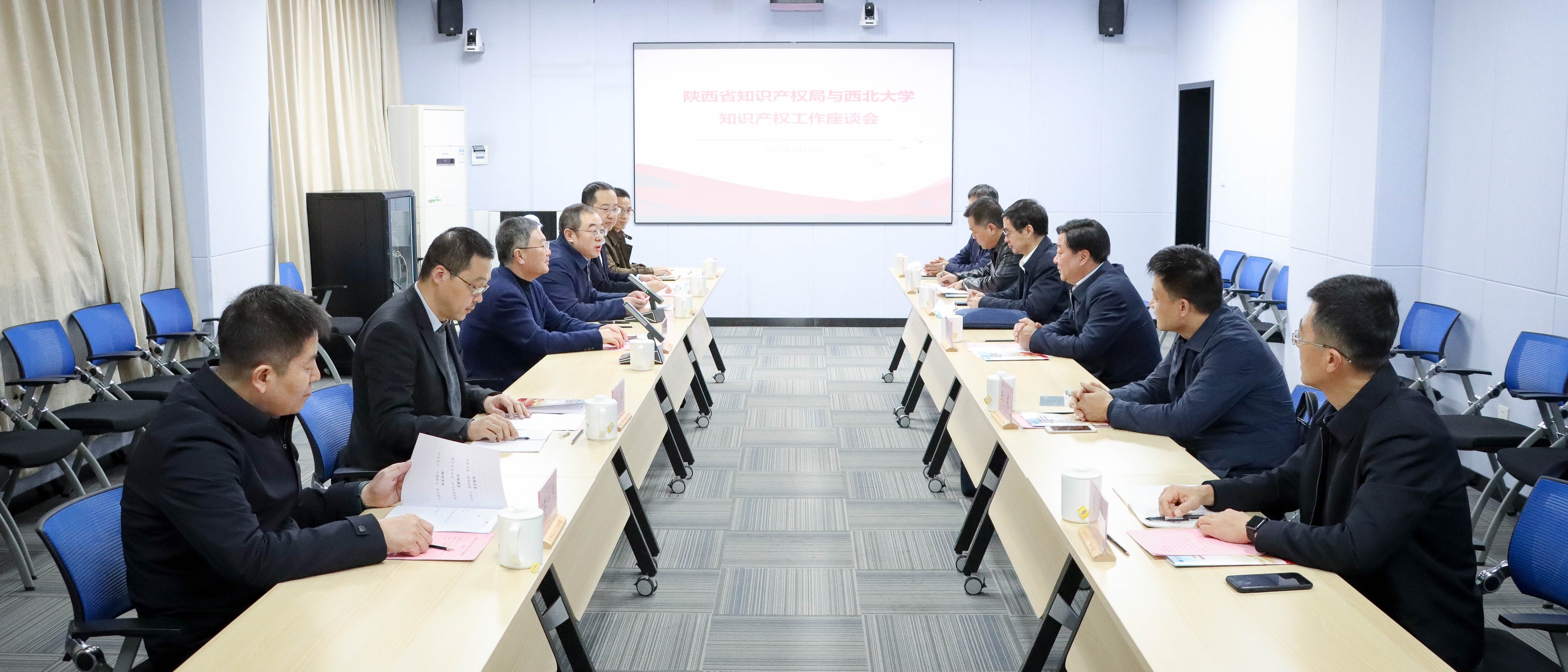 11月16日,陕西省知识产权局党组书记、局长侯社教一行来校调研知识产权工作,校长郭立宏出席调研座谈会。省知识产权副局长李迎波,二级巡视员王东、裴犁,办公室主任李勇,运用促进处处长姚凯学,beat365官网科技处、法学院(知识产权学院)、国家知识产权培训(陕西)基地等单位负责人参加座谈。座谈会由校党委常委、副校长常江主持。座谈会上,科技处负责人从知识产权管理体系建设、高价值专利评估和培育、专利导航和知识产权运营、...