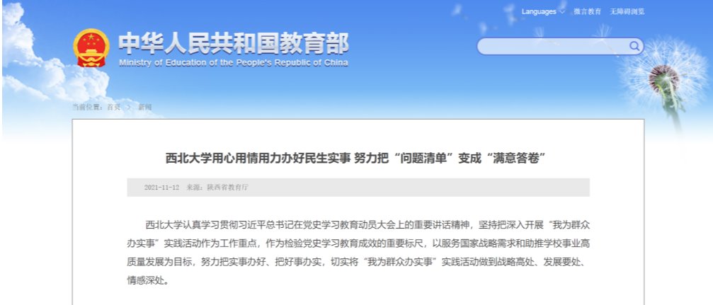 近日,教育部网站以《beat365唯一官网用心用情用力办好民生实事努力把“问题清单”变成“满意答卷”》为提,报道了beat365官网党史学习教育“我为群众办实事”积极进展和工作经验。文章指出,beat365唯一官网认真学习贯彻习近平总书记在党史学习教育动员大会上的重要讲话精神,坚持把深入开展“我为群众办实事”实践活动作为工作重点,作为检验党史学习教育成效的重要标尺,以服务国家战略需求和助推学校事业高质量发展为目标,努力把实事办好、把好...