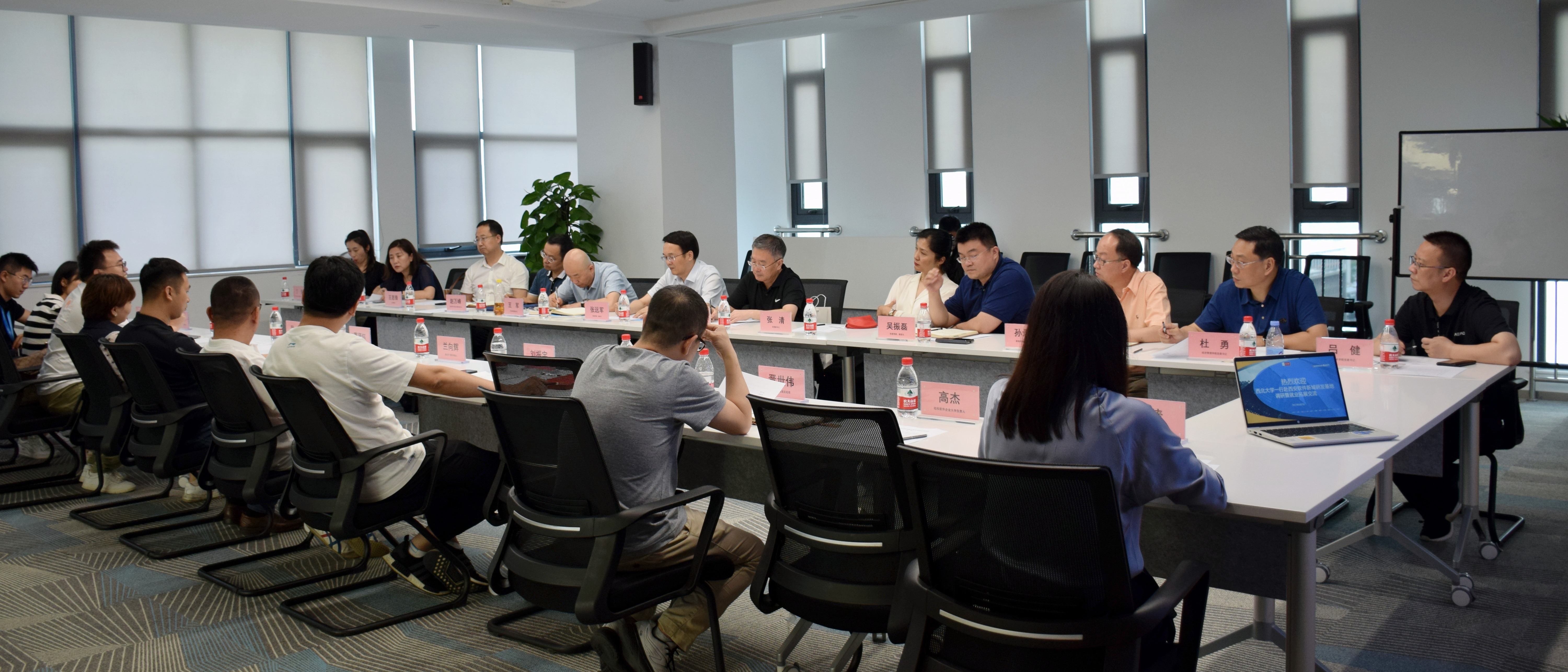 为进一步贯彻落实教育部“访企拓岗促就业”专项行动精神,加强校企沟通合作,推动毕业生高质量就业,6月7日下午,校长郭立宏带队,校党委副书记张清,校党委常委、副校长张远军、吴振磊,文学院、经济管理学院、外国语学院、法学院、新闻传播学院、艺术学院、信息科学与技术学院负责人和就创中心工作人员一行14人赴西安软件新城研发基地交流座谈。易点天下联合创始人兰向辉、纽扣软件CEO葛贤钰、维纳数字科技董事长王顺冉、绝峰...