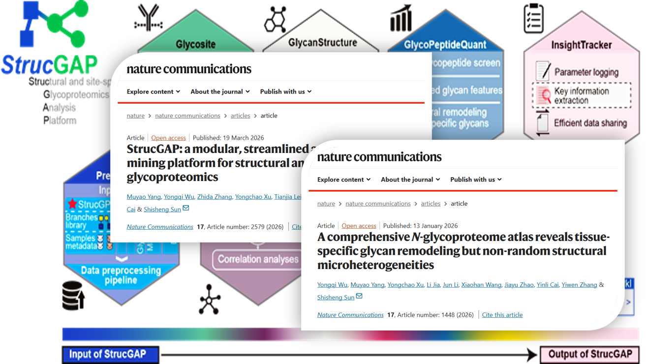 近日,beat365官网生命科学学院孙士生教授领衔的疾病糖蛋白质组学研究团队取得系列重要进展。团队自主研发出面向高精度糖蛋白质组学研究的专用数据挖掘平台StrucGAP,并系统绘制完成小鼠24种组织的高精度N-糖蛋白质组图谱,从分析方法创新与基础数据资源建设两个维度,为糖蛋白质组学研究提供了系统性解决方案与技术支撑。糖基化作为最普遍、最重要的蛋白质翻译后修饰之一,参与细胞粘附、信号转导及免疫应答等关键生物学过程。近年来...