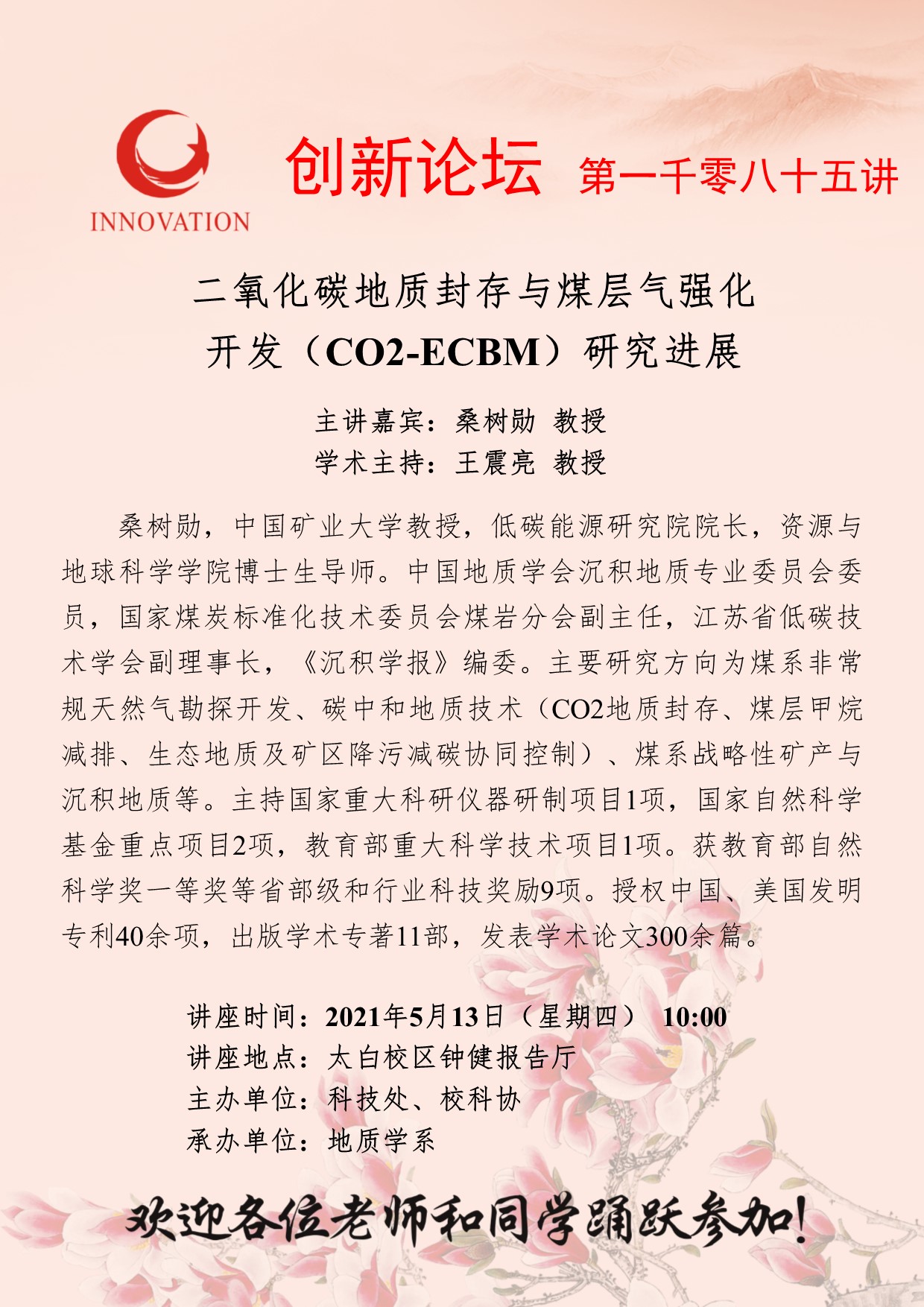beat365唯一官网创新论坛第一千零八十五讲:二氧化碳地质封存与煤层气强化开发(CO2-ECBM)研究进展