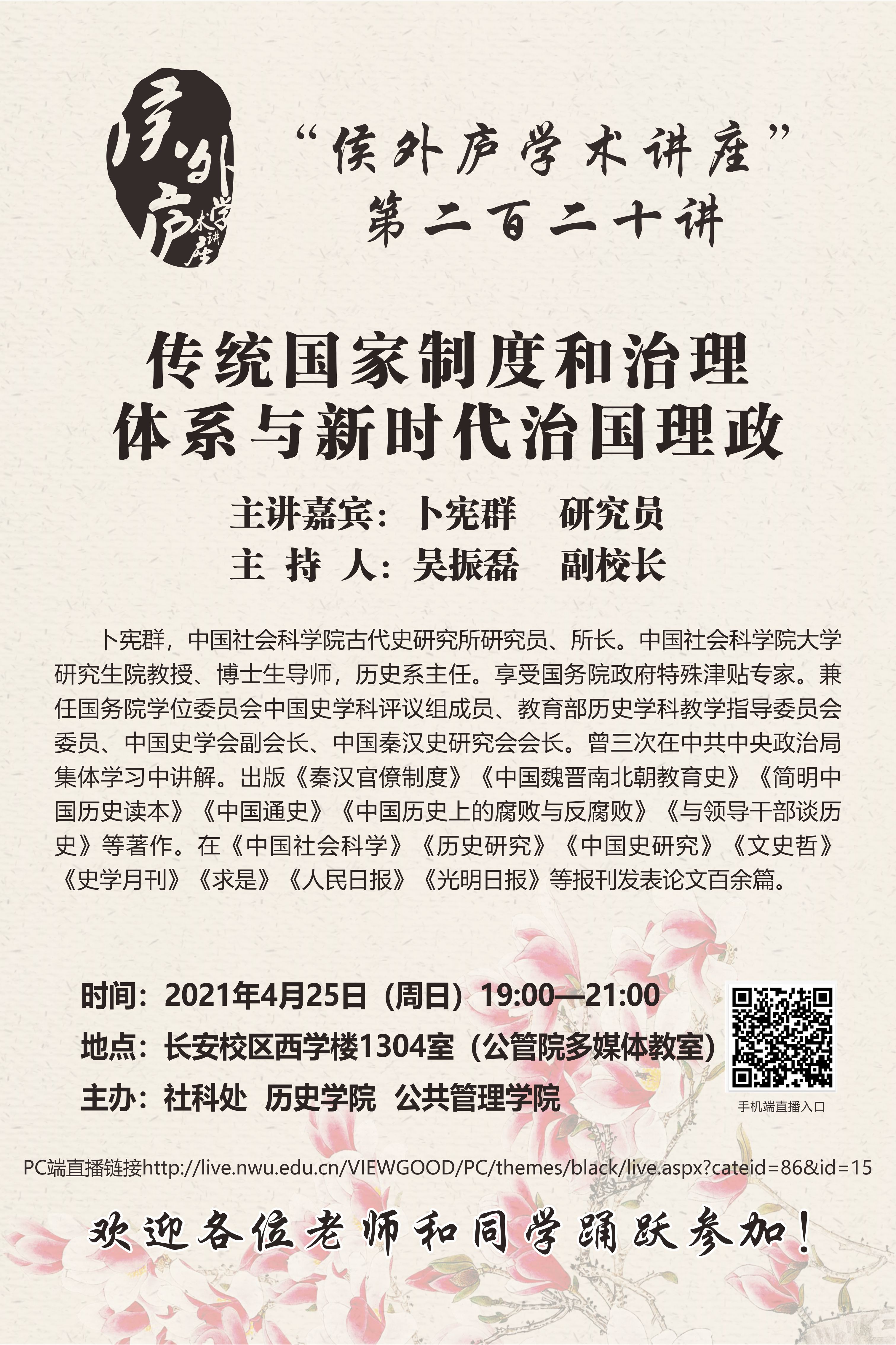 侯外庐学术讲座第二百二十讲:传统国家制度和治理体系与新时代治国理政