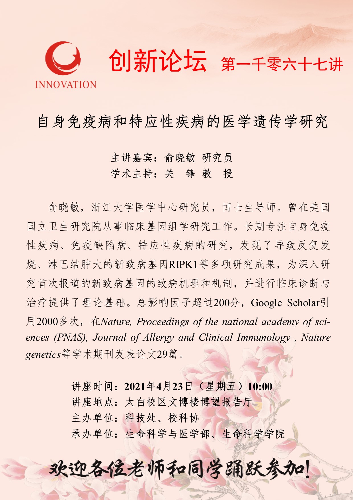 beat365唯一官网创新论坛第一千零六十七讲:自身免疫病和特应性疾病的医学遗传学研究