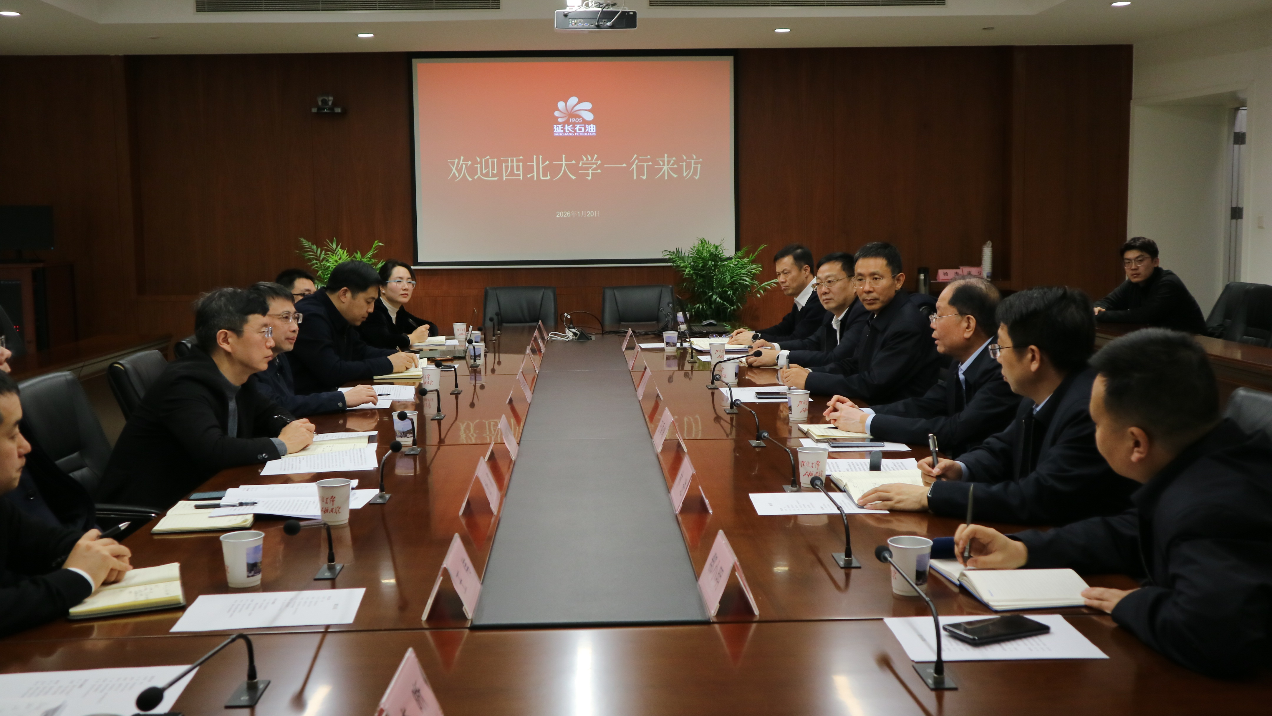 1月20日,校长孙庆伟一行赴陕西延长石油(集团)有限责任公司开展调研交流,推进校企合作工作。中国工程院院士、延长石油集团首席科学家、总地质师王香增出席,双方相关单位负责人参加座谈会。会议由延长石油集团公司党委委员张冰主持。