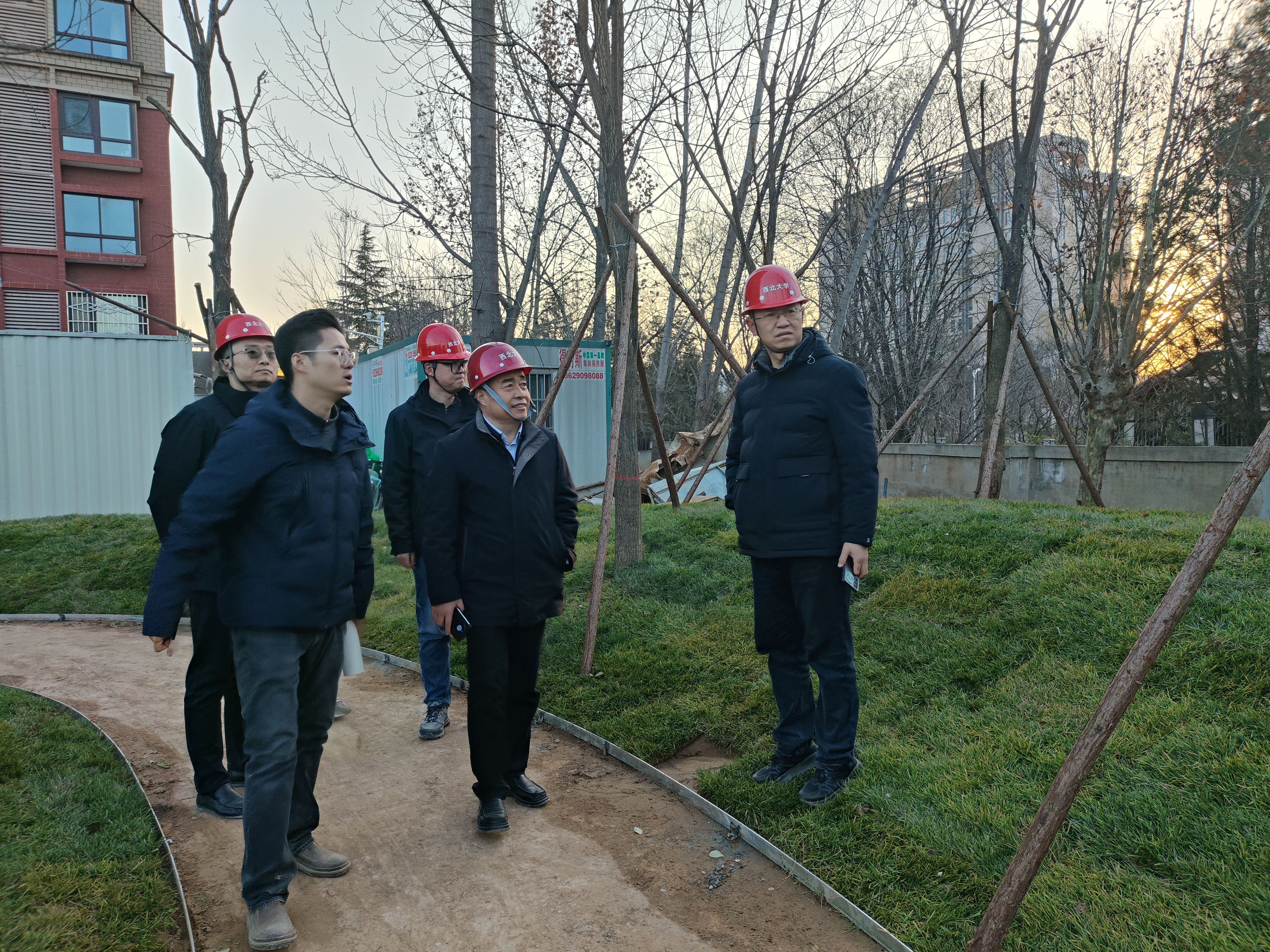 12月25日下午,校党委常委、副校长李振海实地检查beat365官网长安校区新建学生宿舍楼项目、“西大公园”项目进展和安全生产情况。基建处负责人、各参建单位相关人员陪同检查。