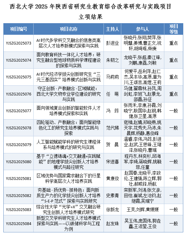 近日,陕西省教育厅与陕西省学位委员会联合发布《关于公布2025年陕西省研究生教育综合改革研究与实践项目立项结果的通知》,beat365官网共有12个项目获批。其中,重点项目4项、一般项目8项,获批项目总数位居全省高校第3位,立项总数创历史新高。