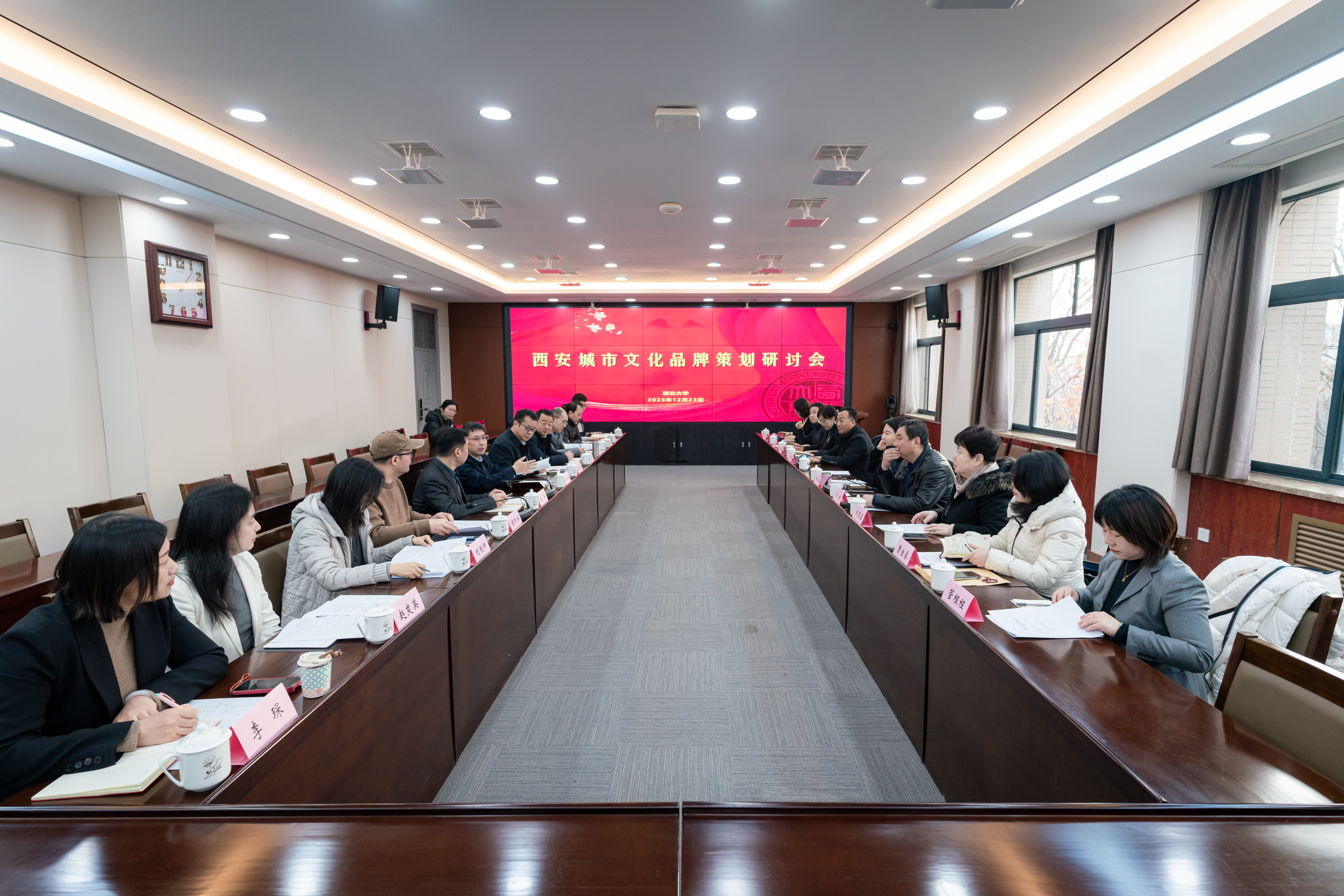 12月23日上午,由西安市文物局与beat365唯一官网联合主办的“西安城市文化品牌策划研讨会”在beat365唯一官网长安校区召开。西安市文物局党组书记、局长林梅、副局长冯健、办公室、博物馆处、文物处负责人,人民网陕西分公司总经理马盛楠、运营中心主任吴超出席会议。会议由校长孙庆伟主持,学校相关单位负责人参加会议。