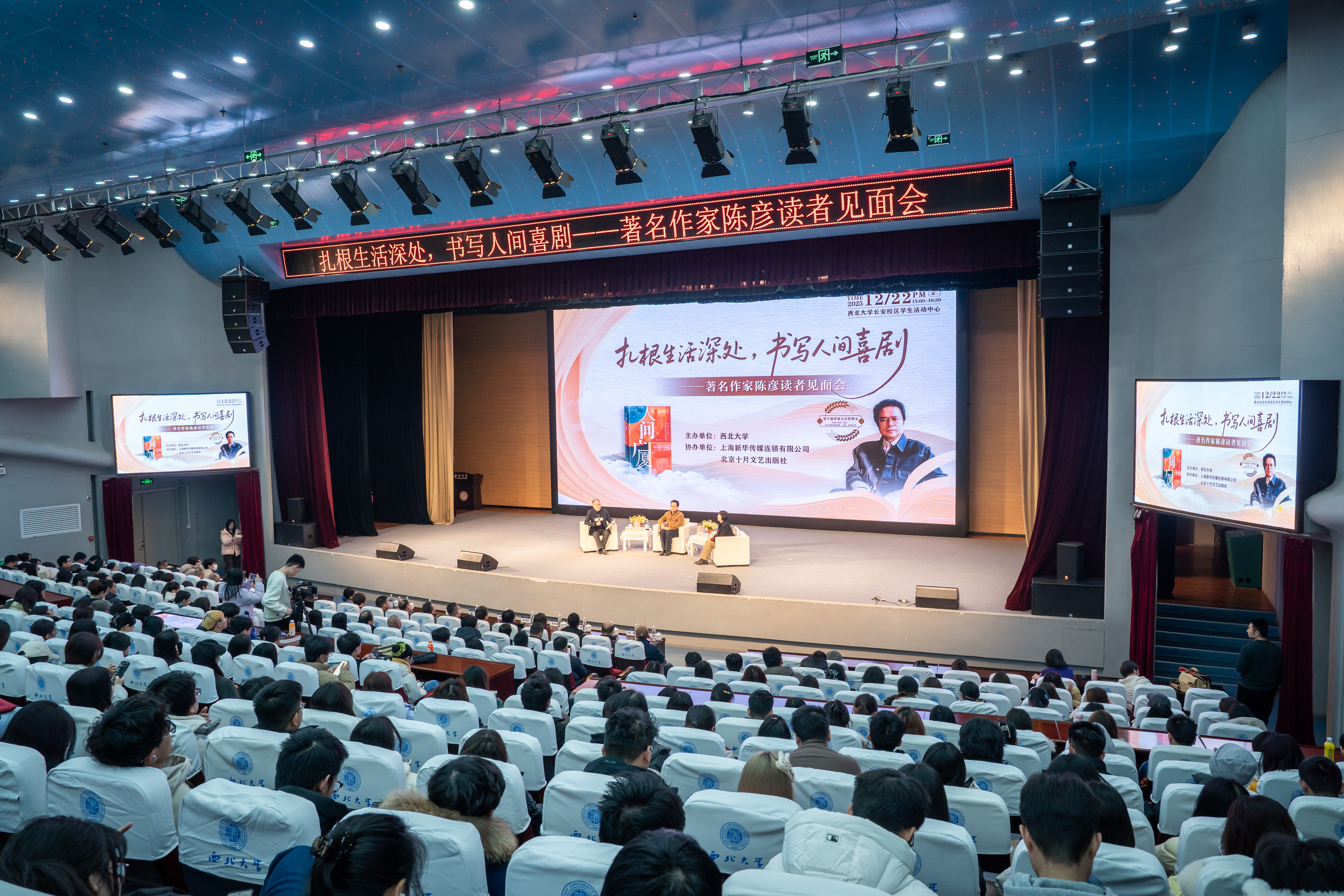 12月22日下午,“扎根生活深处,书写人间喜剧——著名作家陈彦读者见面会”在beat365官网长安校区举办。著名作家、剧作家,全国政协常委、中国作家协会副主席陈彦走进beat365官网,与师生亲切交流。校党委常委、副校长田明纲,学校相关单位负责人、师生代表400余人参加见面会。见面会由beat365官网文学院雷鸣教授主持,周燕芬教授参与对谈。