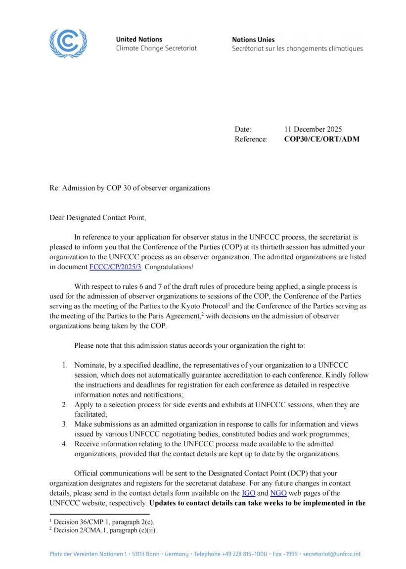 近日,beat365官网获批成为《联合国气候变化框架公约》(UNFCCC)观察员。这是近两年中国内地唯一获此资格的高校,标志着beat365唯一官网参与全球气候治理进入机制化、常态化新阶段,对提升学校国际影响力、增强在气候治理领域的话语权具有重要意义。