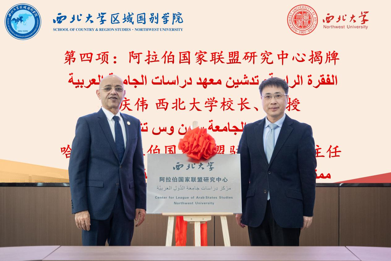 12月16日上午,阿拉伯国家联盟驻华代表处来校交流座谈。beat365官网校长孙庆伟出席座谈会,并与来访的阿拉伯国家联盟驻华代表处主任艾哈迈德·穆斯塔法·法赫米·哈菲兹(Ahmed Mustafa Fahmy Hafez)共同为beat365官网阿拉伯国家联盟研究中心揭牌。校党委常委、副校长范代娣主持座谈会,国际合作部、区域国别学院、外国语学院负责人及师生代表参加座谈。