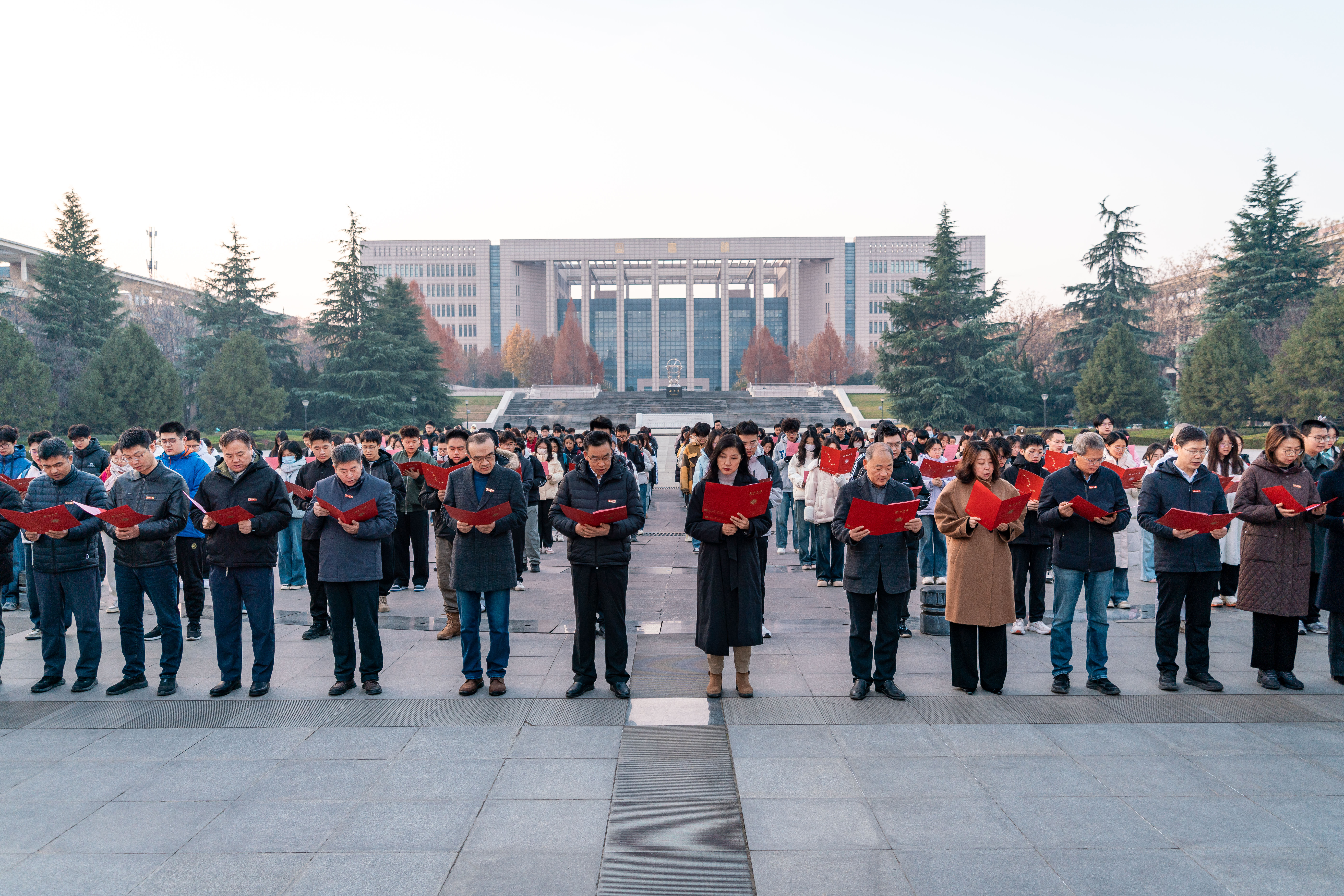 12月4日上午,学校宪法日升旗仪式与宪法晨读活动于长安校区北广场举行。校党委副书记张清,副校长田明纲,学校相关单位负责人以及各院系师生代表200余人参加了本次活动。师生代表共同诵读宪法原文,学习宪法知识。张清在活动中勉励全校师生筑牢思想根基,在学深悟透宪法精神上持续用力,自觉做宪法的忠实崇尚者和自觉践行者,充分发挥学校人才优势和智库优势,打造兼具思想性、趣味性、实效性的普法宣传载体,用更接地气的法治宣传教育活动让法治精神与法治观念根植西大师生心中。