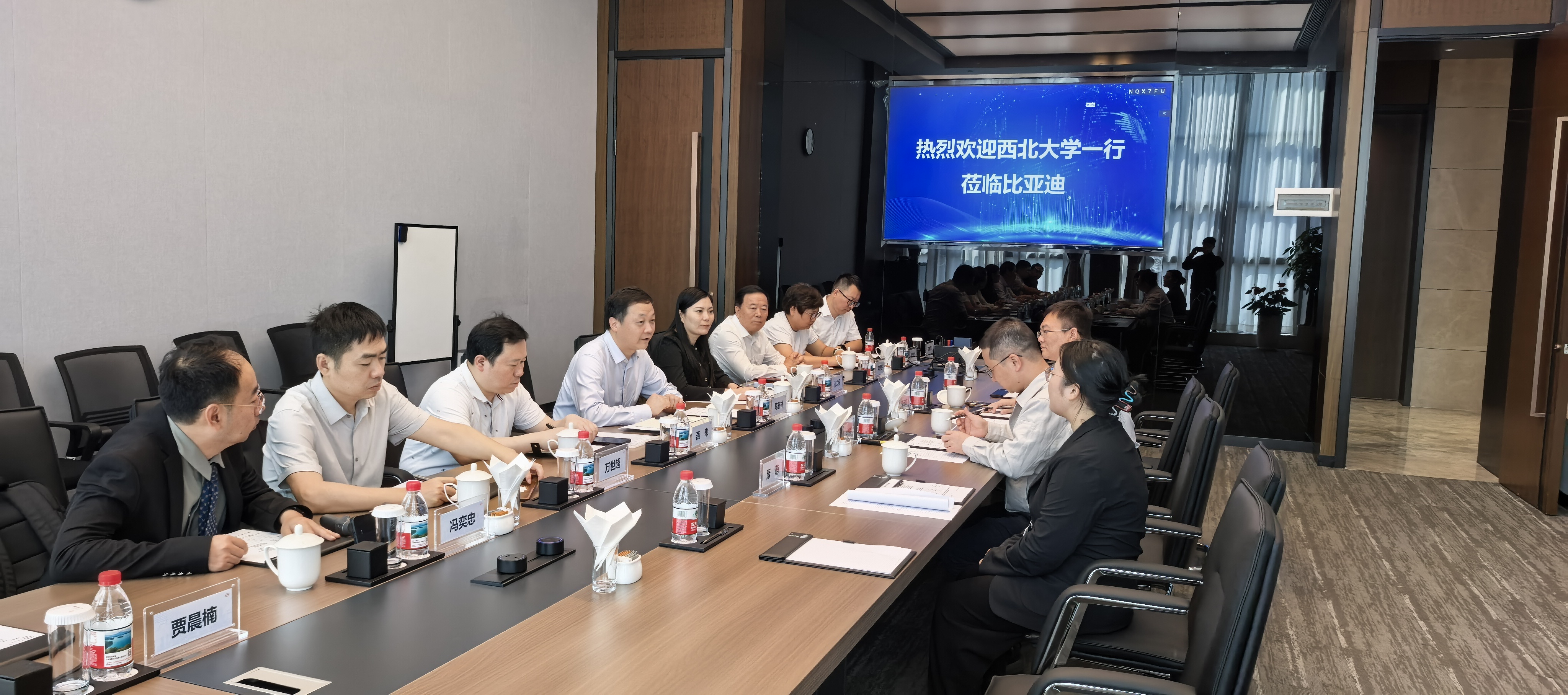 在比亚迪深圳总部,双方就就业招聘、产教融合、校企合作、订单式人才培养模式、“一带一路”合作等议题展开交流。陈富林还深入了解了比亚迪在智能制造、绿色交通等领域的创新成果,提出了学校与比亚迪进行多领域合作的思路架构。