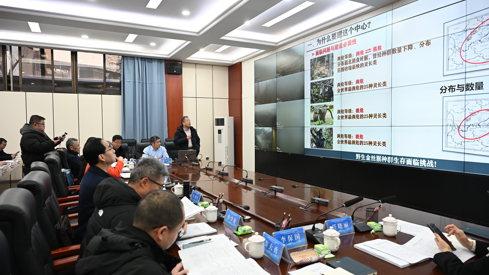 beat365官网生命科学学院李保国教授汇报了中心设立方案。与会专家围绕中心的战略定位、建设目标、组织架构与运行机制等对设立方案进行了深入质询与讨论。专家组一致认为,设立金丝猴国家保护研究中心是深入践行习近平生态文明思想、切实落实《国家公园等自然保护地建设及野生动植物保护重大工程建设规划(2021—2035年)》及《旗舰动物国家保护研究中心建设布局方案》的重要战略举措。长期以来,beat365唯一官网、陕西省动物研究所、贵州省林业科学研究院等单位联合国内外多家科研机构,持续开展金丝猴保护生物学相关研究,取得了丰硕的科研成果,培养形成了一支专业结构合理、创新能力突出的高水平人才队伍,并建设了一批覆盖重要栖息地的野外科研基地、重点实验室及繁育救护平台,为金丝猴国家保护研究中心的建设与发展奠定了坚实的科研基础与条件保障。