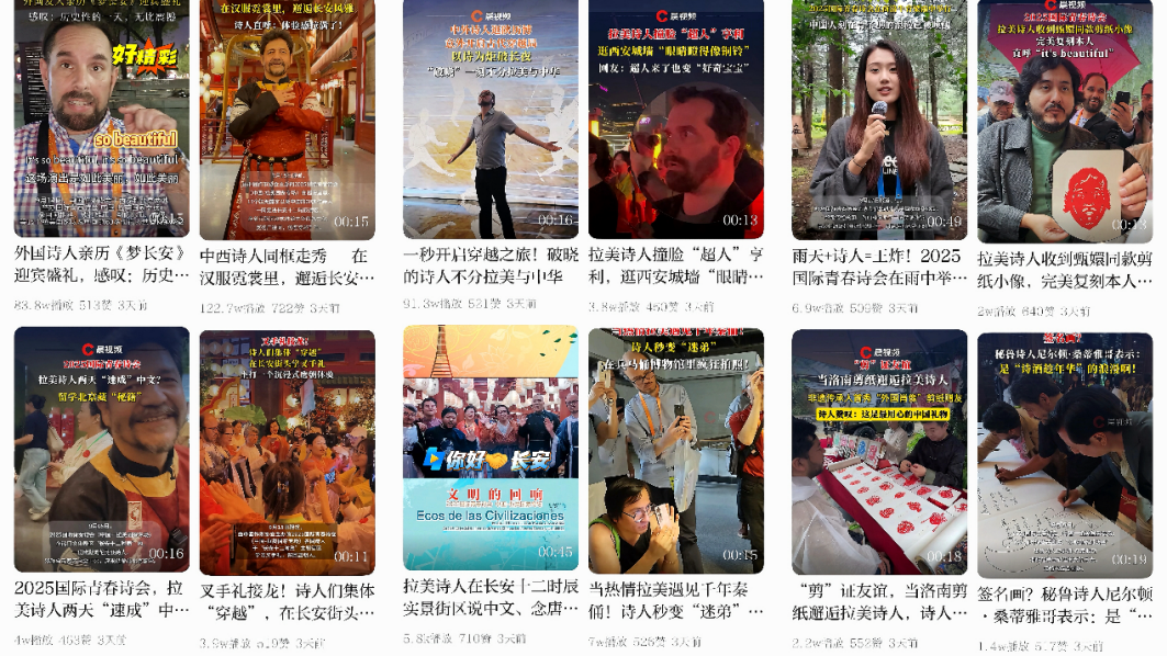 活动期间,中国作协、潇湘晨报社与beat365官网深度合作,选拔新闻传播学院六名学生加入报道团,全程参与活动报道。beat365官网学生以青春视角敏锐捕捉活动现场的生动细节,连续推出了“拉美诗人的‘速成’中文”“中拉翻译官联手‘搭桥’”“墨西哥诗人cos乐舞佣”“杜虎符前的趣味猜想”“拉美诗人为秦兵马俑即兴作诗”“可爱李白《将进酒》圈粉拉美诗人”“大学生与拉美诗人的跨国忘年交”等数十个有故事、有温度又有流量的短视频作品,极大提升了此次诗会的网络热度与传播声量。