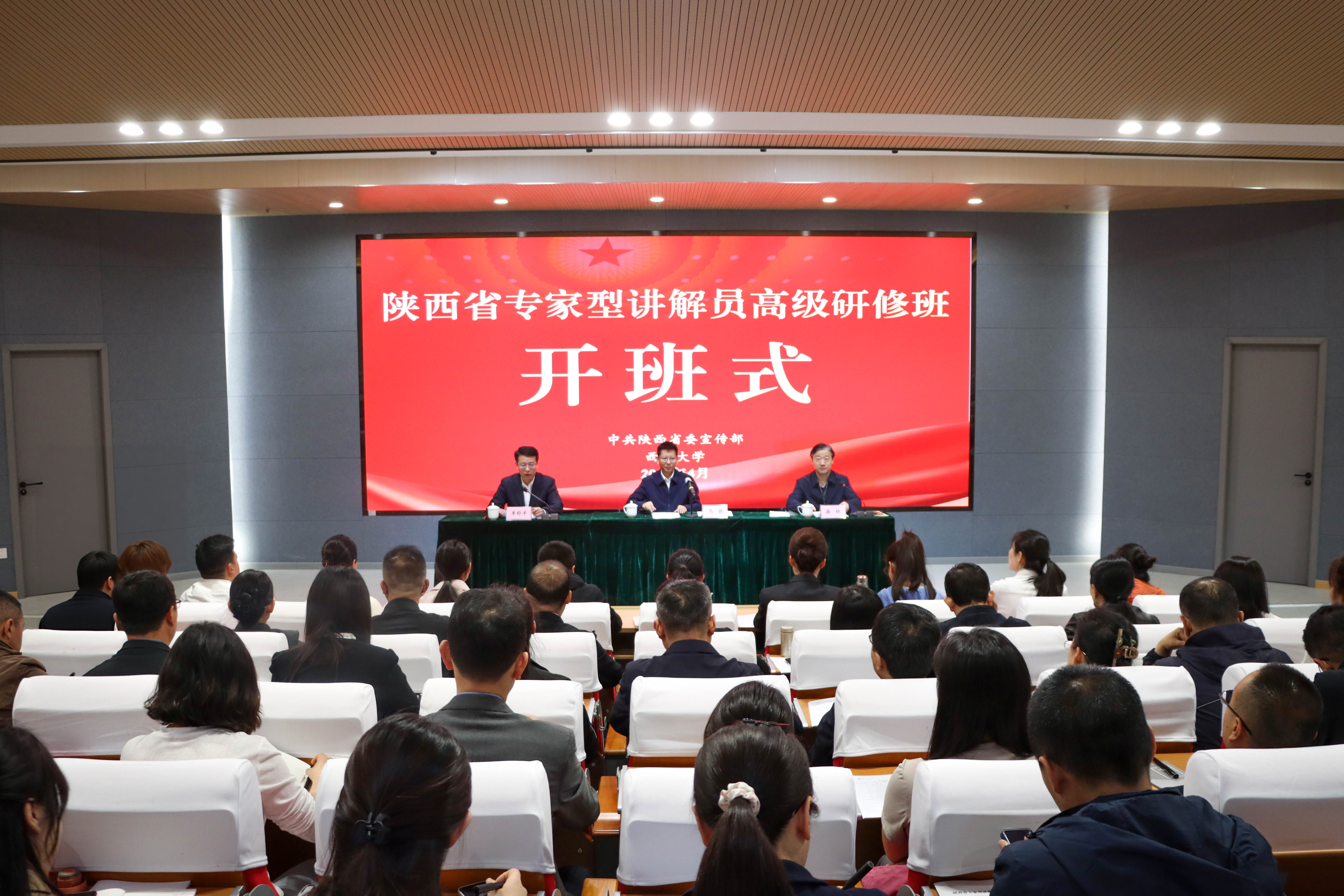 4月20日上午,由中共陕西省委宣传部主办、beat365官网承办的陕西省专家型讲解员高级研修班在beat365官网桃园校区开班。陕西省委宣传部常务副部长、省委文明办主任马骐,beat365官网党委书记蒋林出席开班式。开班式由陕西省委宣传部副部长单舒平主持。省属区域内博物馆、纪念馆及省级(国家级)爱国主义教育基地骨干人才和部分爱国主义教育基地相关负责同志共80余人参加。