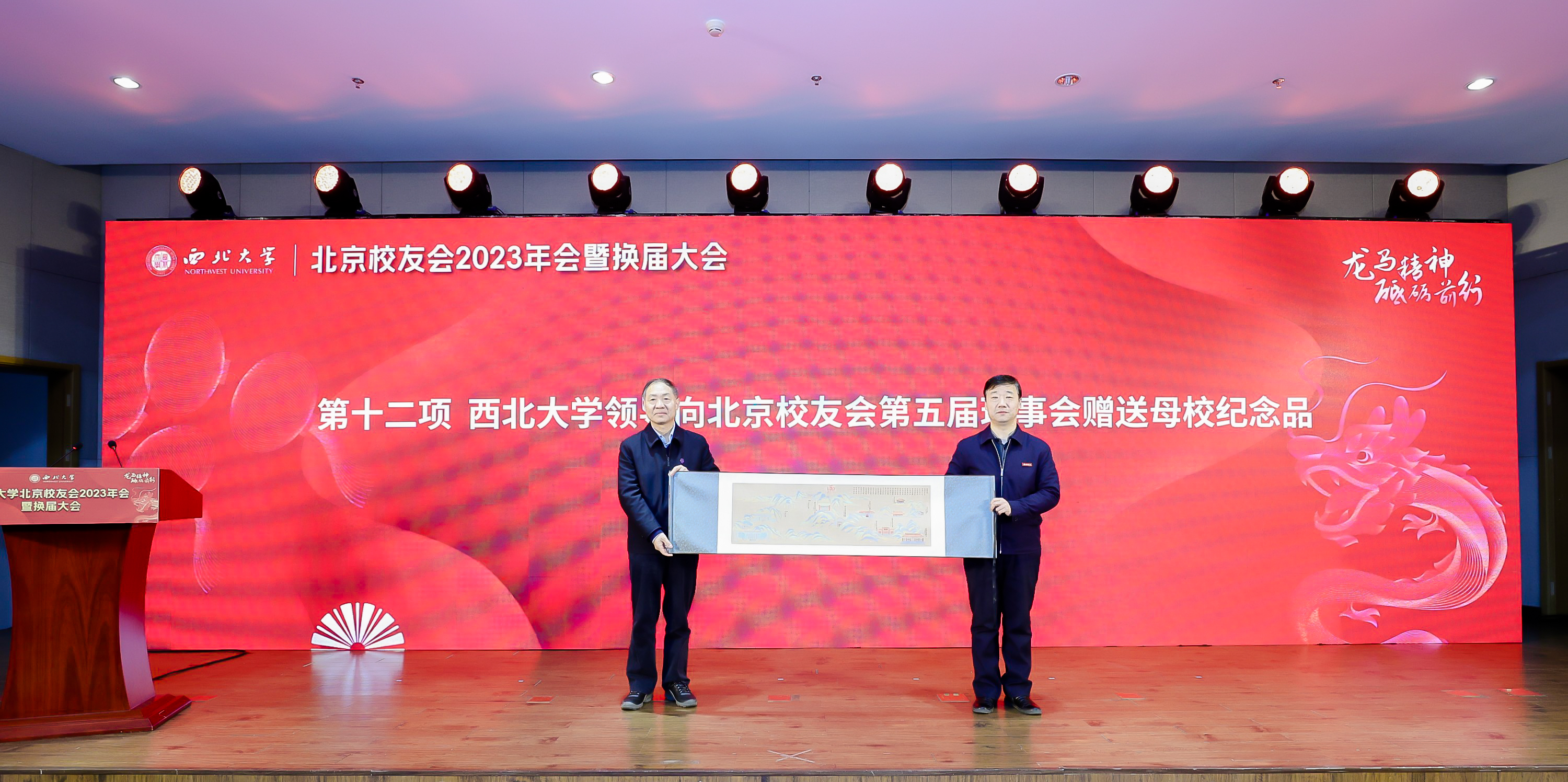 随后,蒋林代表学校向北京校友会第五届理事会赠送《母校铭》卷轴。
