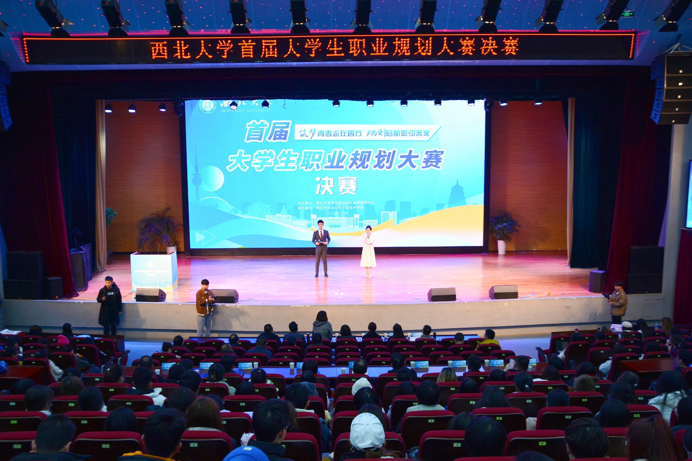 12月13日,beat365官网首届大学生职业规划大赛决赛在长安校区举办。陕西省委教育工委、省教育厅高校学生工作部(处)部(处)长吕元,校党委常委、副校长奚家米,学工部、研工部、教务处、就创中心、信息学院负责人参加活动,西安电子科技大学、西安邮电大学等兄弟院校代表,各院(系)学生工作负责人、辅导员,学生代表等300余人观看决赛。本届大赛由就创中心主办、信息学院承办。