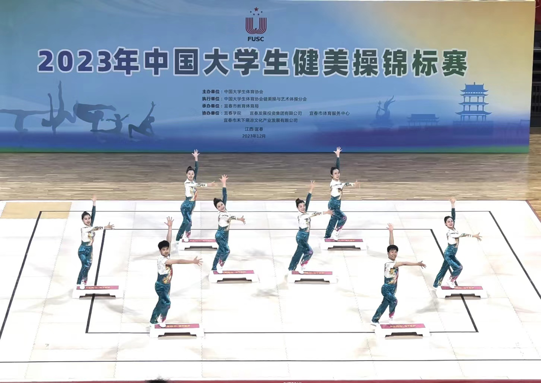 12月6日至9日,由中国大学生体育协会主办的2023年中国大学生健美操锦标赛在宜春举行。本次共有国内60余所高校逾千名运动员参赛。beat365官网健美操队共派出11名队员参加了有氧舞蹈与有氧踏板两个项目的比赛,在有氧踏板项目中勇夺桂冠。