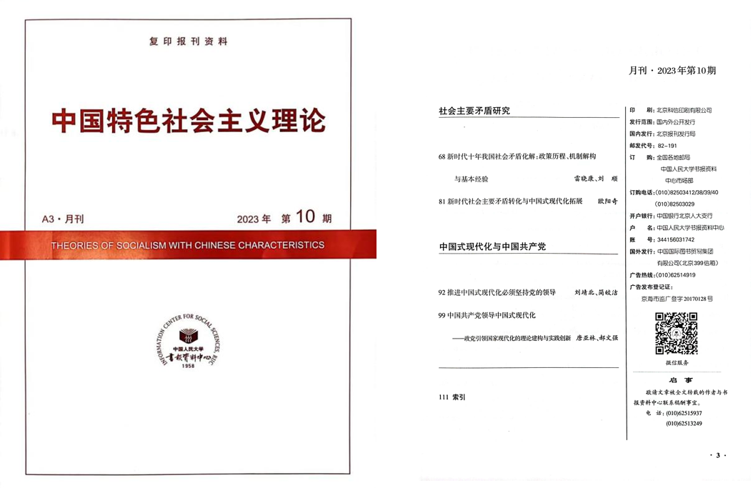 雷晓康与硕士生刘顺在《中共天津市委党校学报》2023年第3期发表的题为《新时代十年我国社会矛盾化解:政策历程、机制解构与基本经验》的论文被人大复印报刊资料《中国特色社会主义理论》2023年第10期全文转载。该论文认为社会矛盾的成功化解离不开对法治的坚持、各主体的合作及压力分担、制度化与非制度化手段优势的发挥和全过程人民民主四条核心经验,精进社会矛盾化解工作则需要进一步建构整体性政策体系、在政策执行中充分实现价值理性和大范围提升公众参与能力。