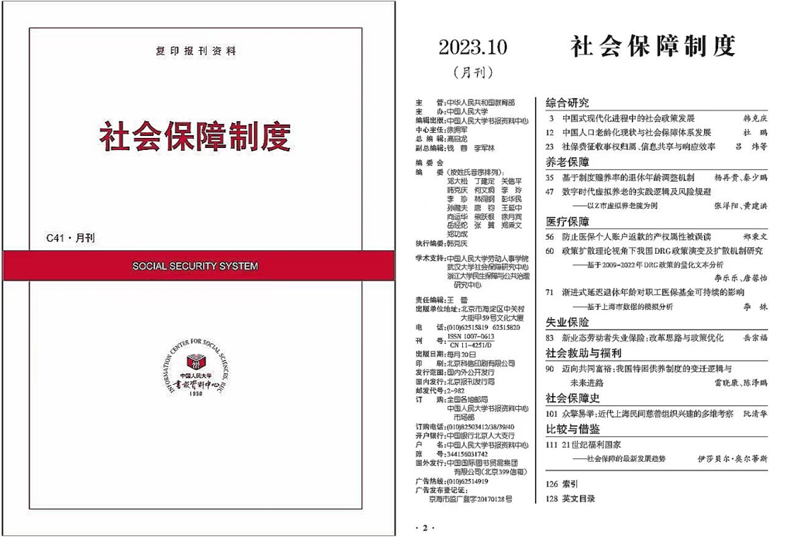 雷晓康在《中国高校社会科学》2023年第1期上发表的题为《数字赋能第三支柱养老保险发展探析》被《新华文摘》(网络版)2023年第12期全文转载。该论文认为,完善“三支柱”养老保险体系,是我国养老保险制度的优化目标之一,数字化、信息化等高速发展为推动第三支柱养老保险的发展提供了新的机遇,数字赋能通过打通三支柱养老保险产品、广泛开展公众养老投资教育、规范个人养老金市场、建立简易投资模式等方式,能够更好推动第三支柱养老保险高速发展。
