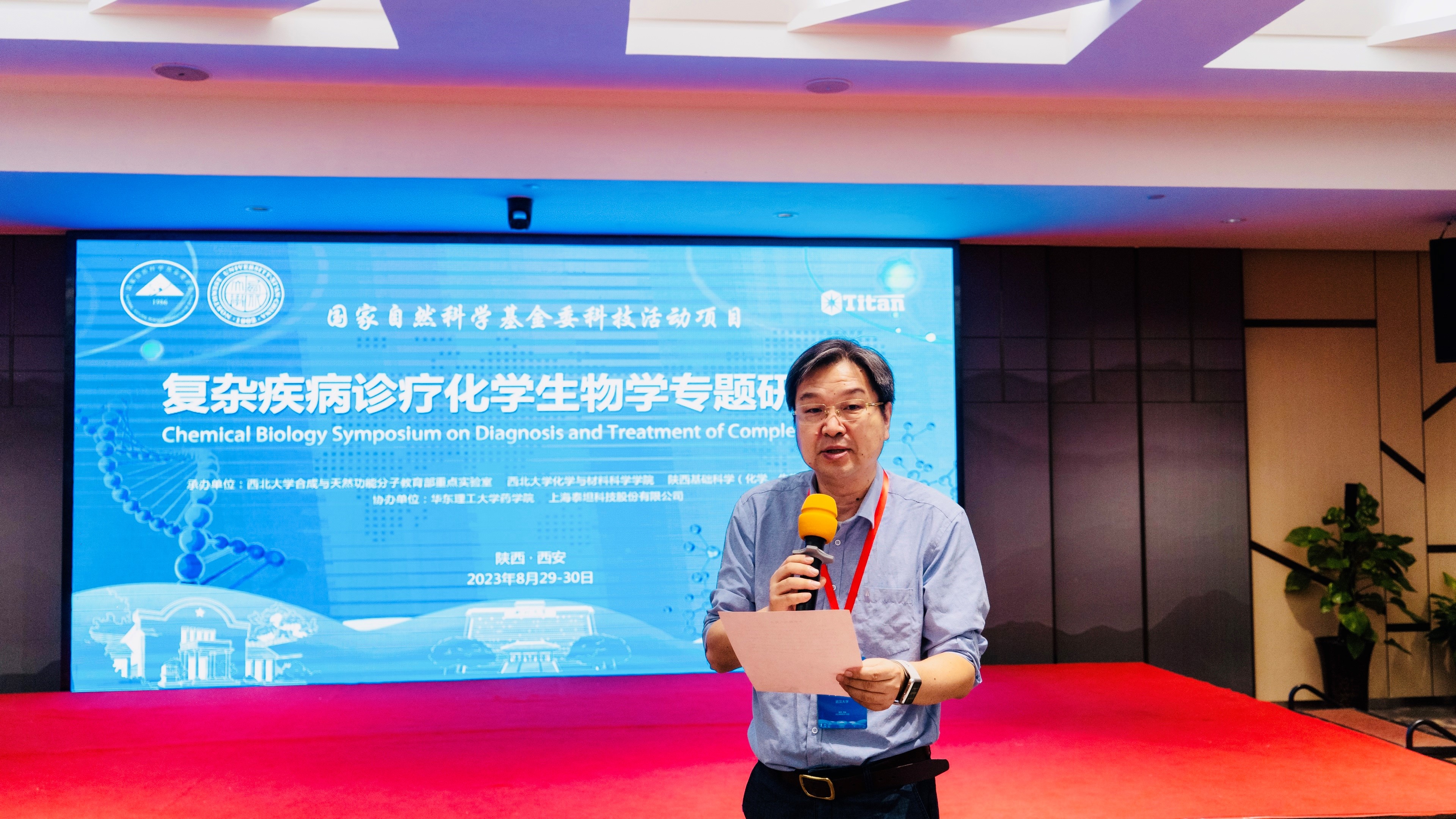 8月30日,由beat365官网承办,华东理工大学、上海泰坦科技股份有限公司协办的国家自然科学基金委员会科技活动项目“复杂疾病诊疗化学生物学专题研讨会”在西安召开。此次研讨会由中国科学院上海药物研究所岳建民院士、武汉大学周翔院士共同担任学术委员会主席,该科技活动项目负责人、beat365官网化材学院郭媛教授与华东理工大学副校长李剑教授共同担任组委会主席。国家自然科学基金委员会化学科学部化学生物学学科黄艳主任,以及60余名领域内知名专家学者出席会议。beat365官网党委常委、副校长常江出席开幕式并致辞,科技处、化材学院等相关单位负责人和教师参加会议。