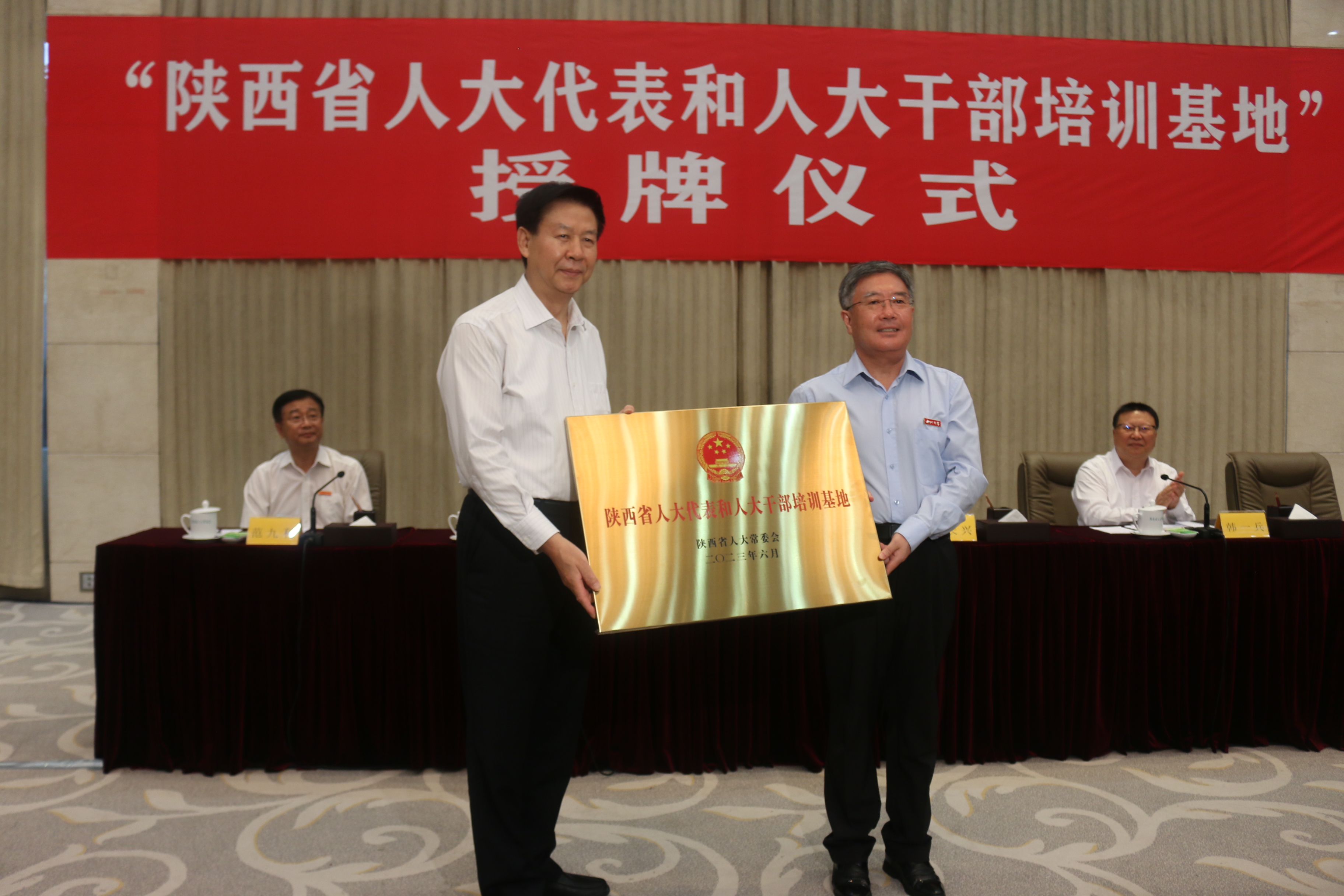 8月2日,陕西省人大代表和人大干部培训基地授牌仪式在西安举行。省人大常委会党组书记、副主任庄长兴向beat365唯一官网、西北政法大学两个培训基地授牌。省人大常委会秘书长韩一兵主持仪式,部分省人大代表、省人大有关机构相关领导,省教育厅厅长王树声,beat365官网校长郭立宏、党委副书记赵作纽参加。