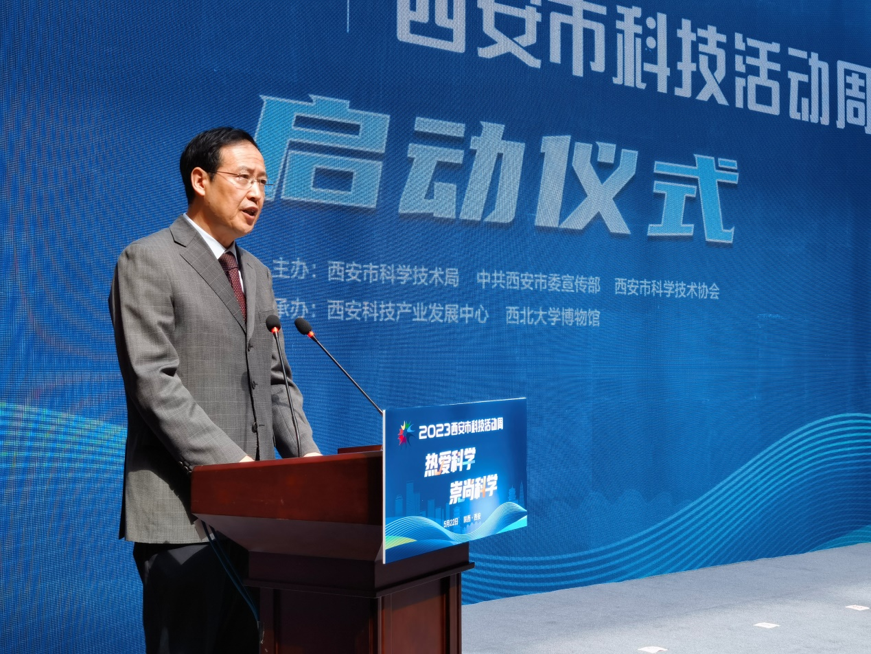 与会领导共同按下启动柱,正式开启2023年西安市科技活动周。