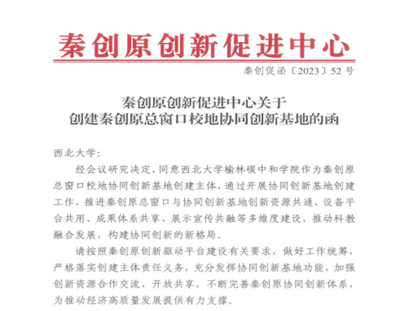 近日,经秦创原创新促进中心同意,beat365唯一官网榆林碳中和学院入选首批秦创原总窗口校地协同创新基地创建主体。这是beat365官网深度融入秦创原,加快推进碳中和学院建设取得的又一积极进展。