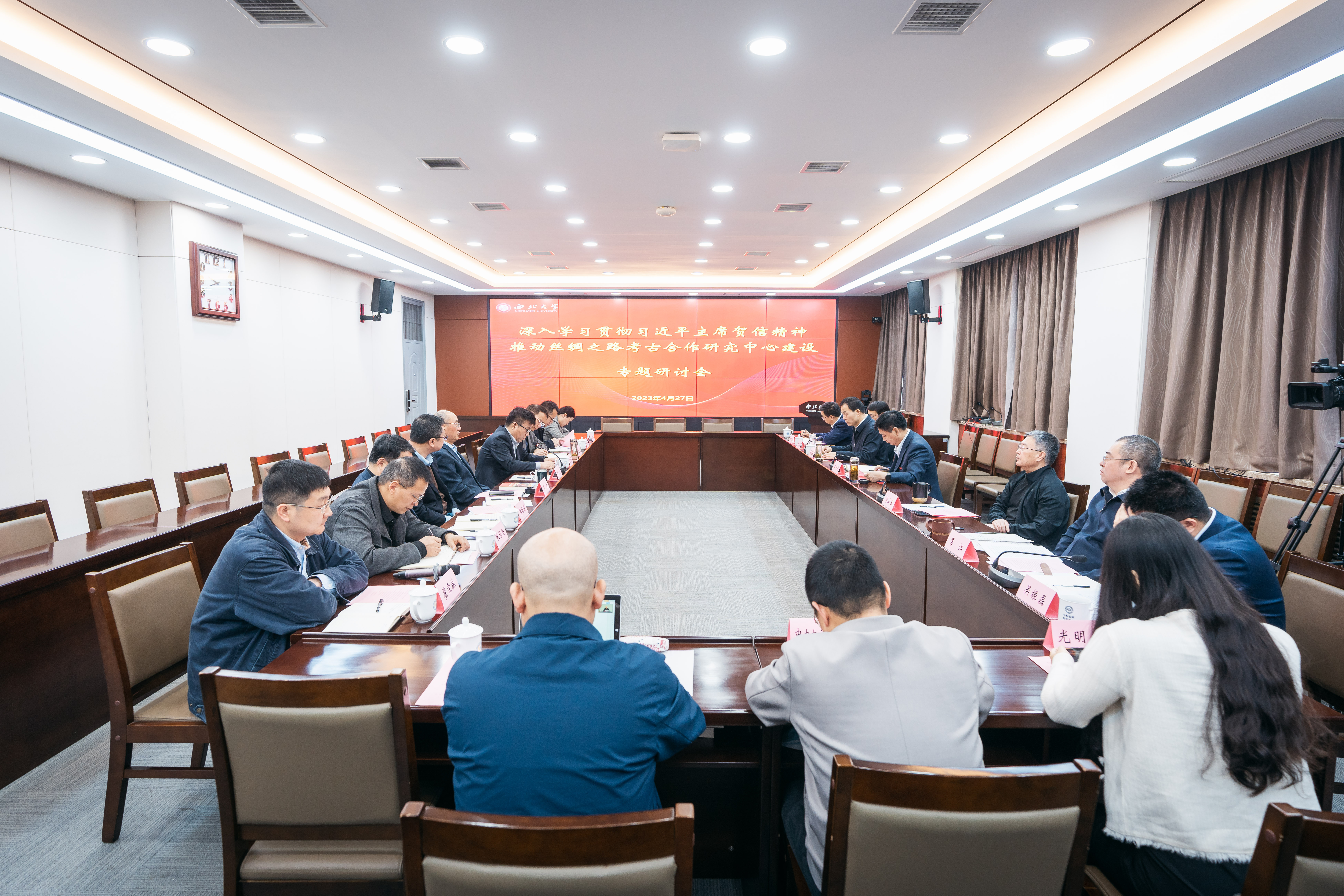 4月27日上午,beat365官网在长安校区召开“深入学习贯彻习近平主席贺信精神 推动丝绸之路考古合作研究中心建设”专题研讨会。