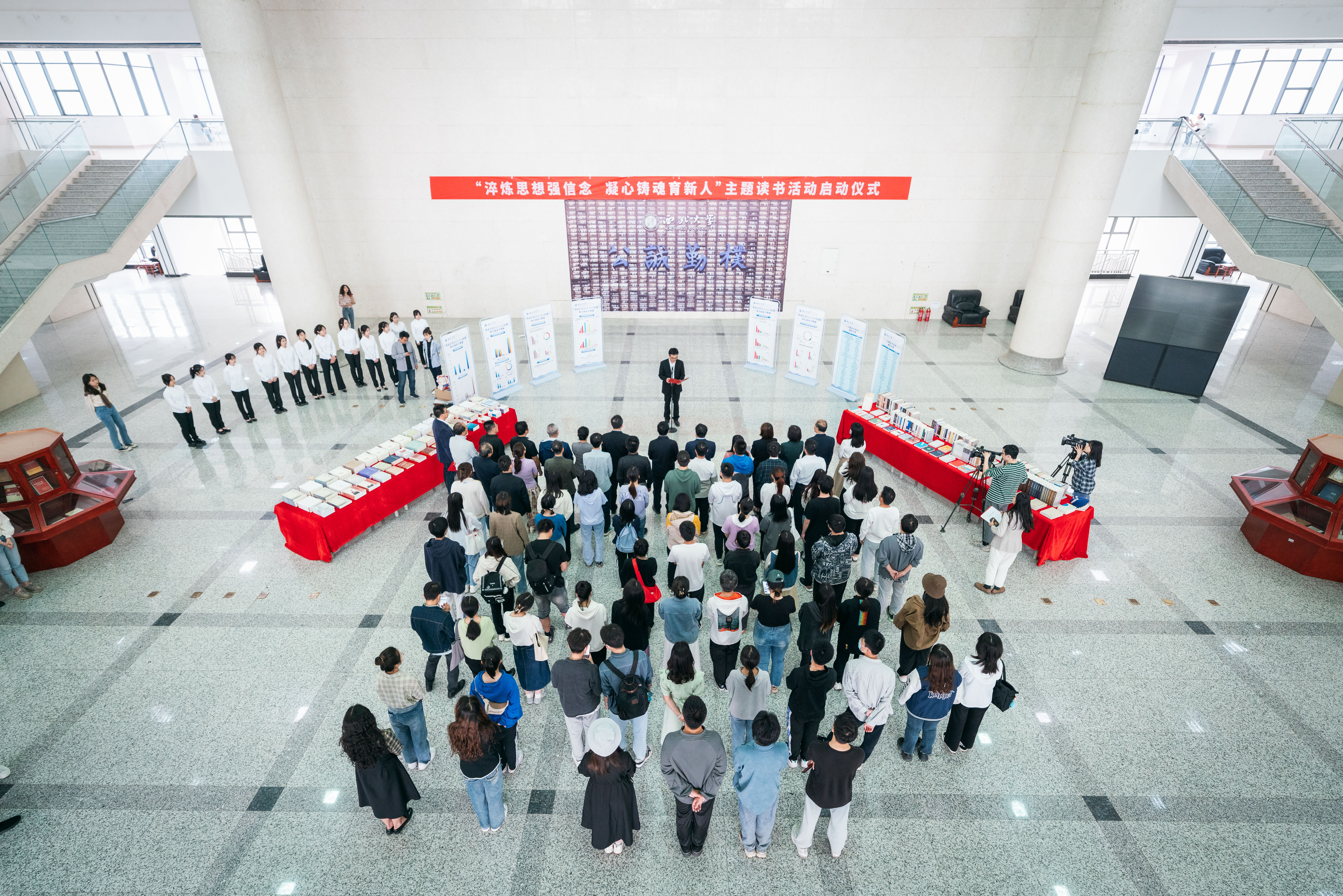 4月20日下午,学校在长安校区举办“淬炼思想强信念 凝心铸魂育新人”主题读书活动启动仪式。校党委书记王亚杰,党(校)办、组织部、教工部、学工部、研工部、校工会、校团委、图书馆、离退休处、出版社、期刊管理中心负责人和各单位师生代表参加了活动。启动仪式由校党委常委、宣传部部长田明纲主持。