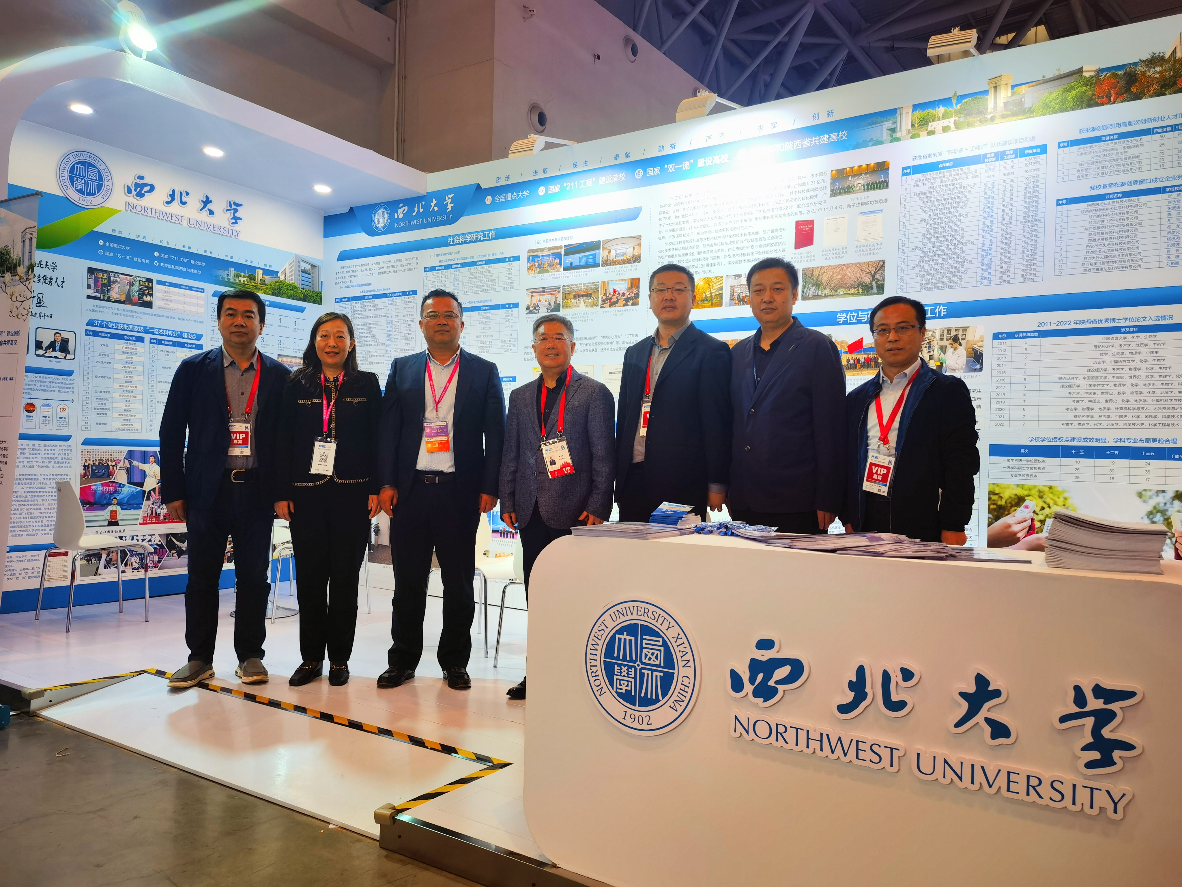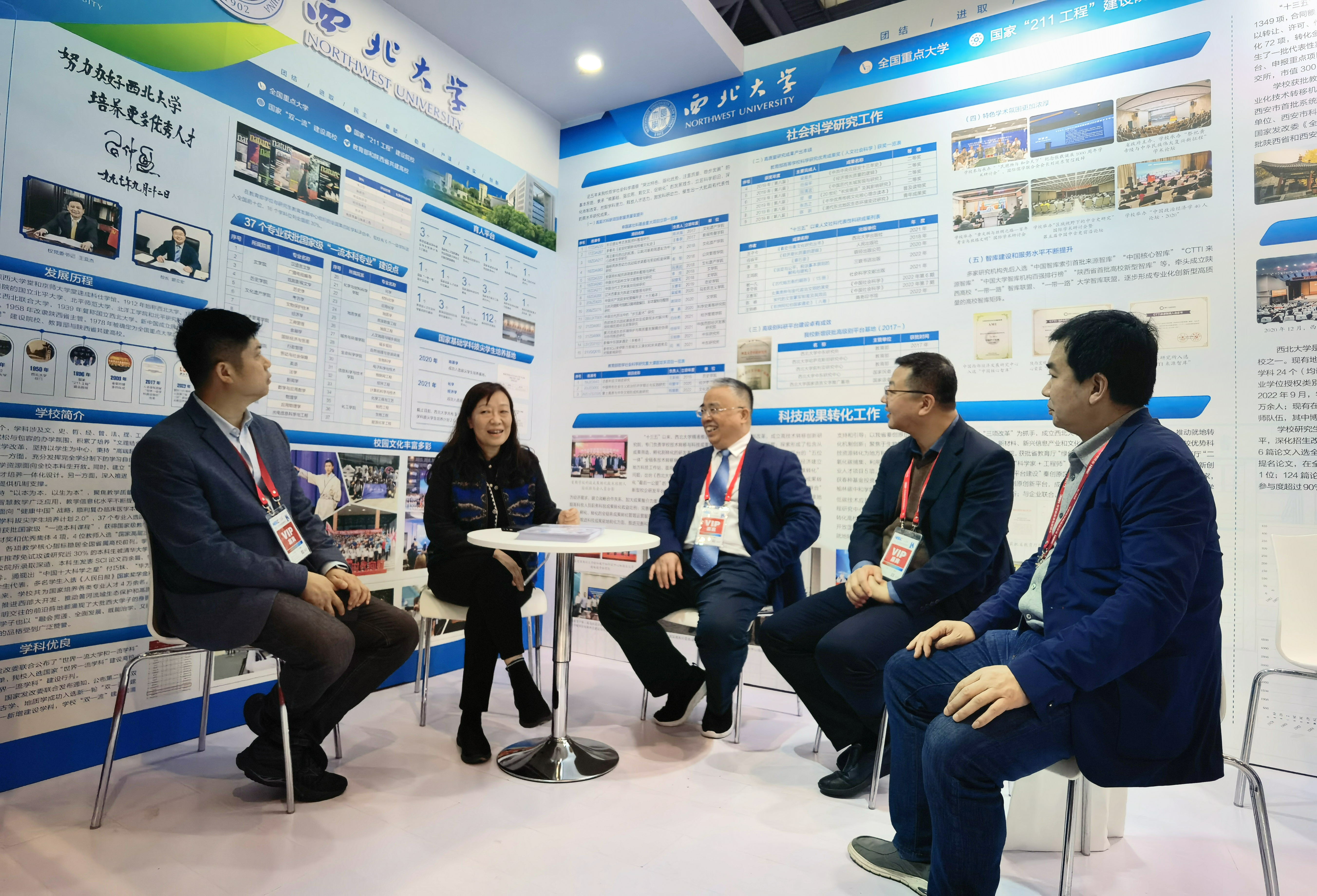 高博会期间,陕西省政府学位委员会秘书长袁宁和郭立宏、奚家米分别来到高校展区参观,并在beat365官网参展区域了解布展情况,慰问参展工作人员。兄弟高校、展商代表、参展观众纷纷来到beat365官网展位沟通交流、洽谈合作、咨询招生等。