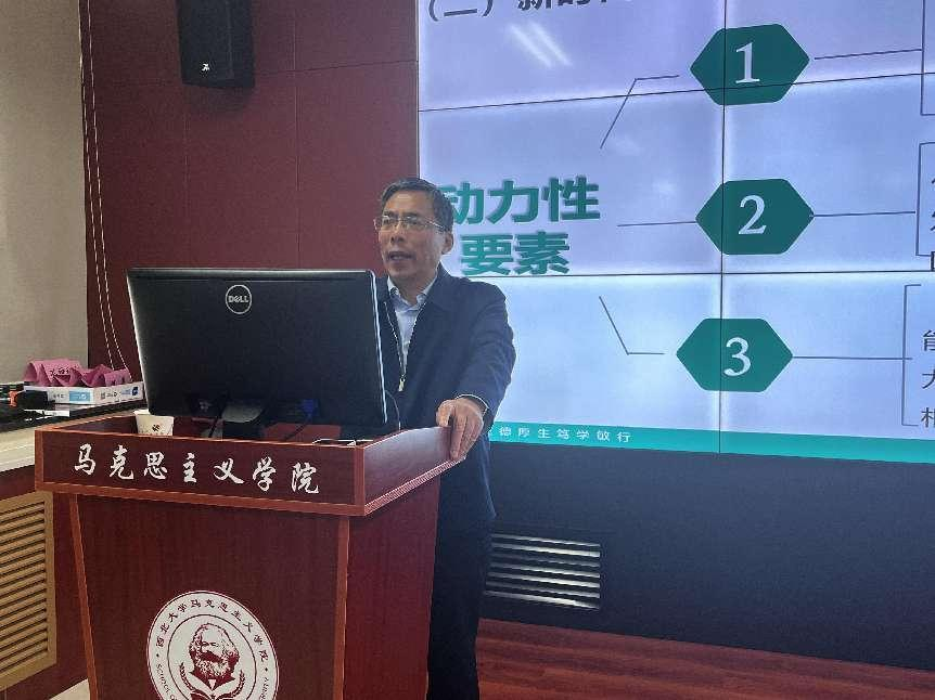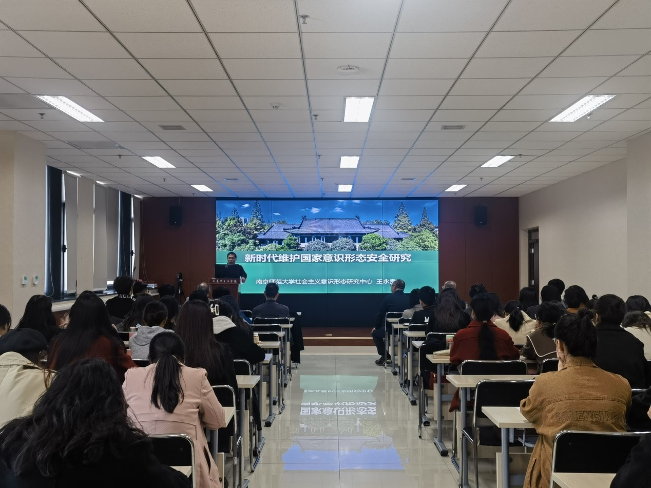 3月25日下午,国务院学位委员会学科评议组成员、南京师范大学马克思主义学院博导王永贵教授应邀做客beat365官网“侯外庐学术讲座”第269讲,为师生作了题为“新时代维护国家意识形态安全研究”的学术报告。讲座由马克思主义学院何博教授主持,学院100余名师生听取了讲座。
