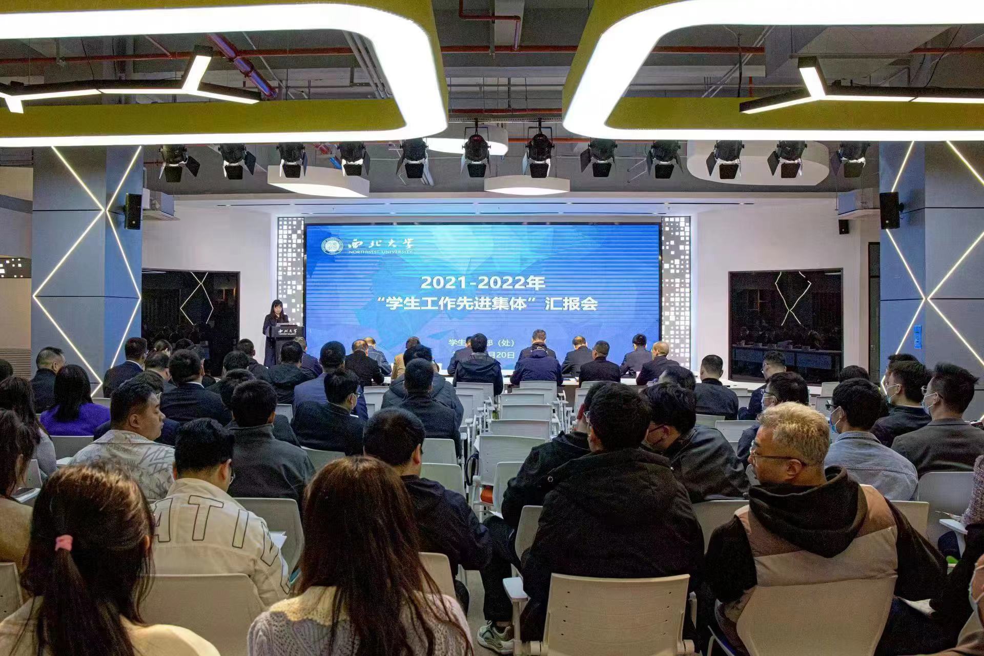 为进一步总结经验、表彰先进,更好地将党的二十大各项要求和部署落实落细在beat365官网学生工作中,助力学校改革和事业发展,3月20日下午,beat365官网在长安校区举行2021-2022年“学生工作先进集体”汇报会。校党委常委、副校长奚家米,校学生工作领导小组成员单位负责人担任评委,院(系)学生工作负责人、辅导员、学生工作部门干部参加会议。会议由学工部负责人主持。