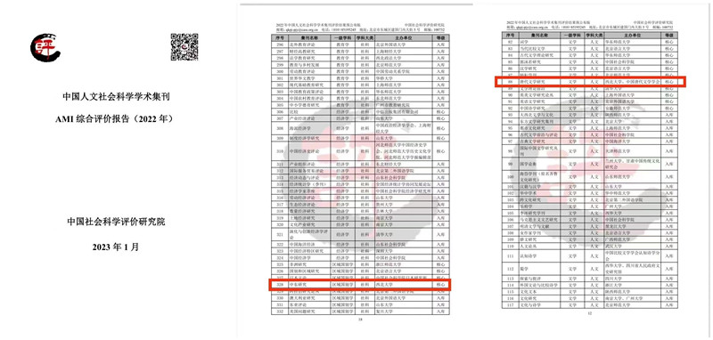 本次评选中,区域国别学共评出18种,入库集刊14种,核心集刊4种,《中东研究》被列为四种核心集刊之一;文学学科集刊共评出49种,入库集刊38种,核心集刊11种,《唐代文学研究》被列为核心集刊之一。