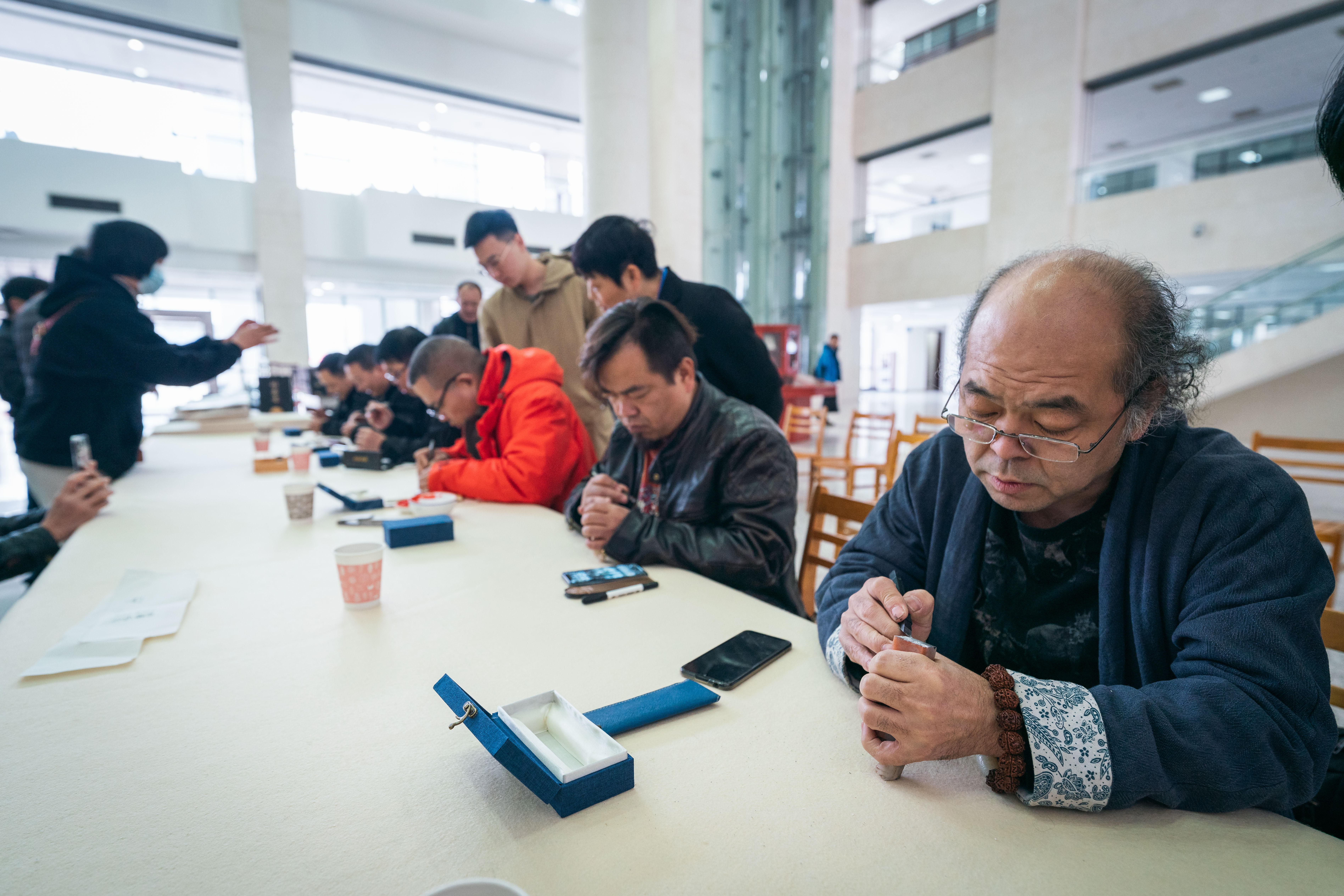 活动开始前,终南印社的艺术家们还向与会嘉宾和师生们现场展示了婉畅流走的篆刻艺术。