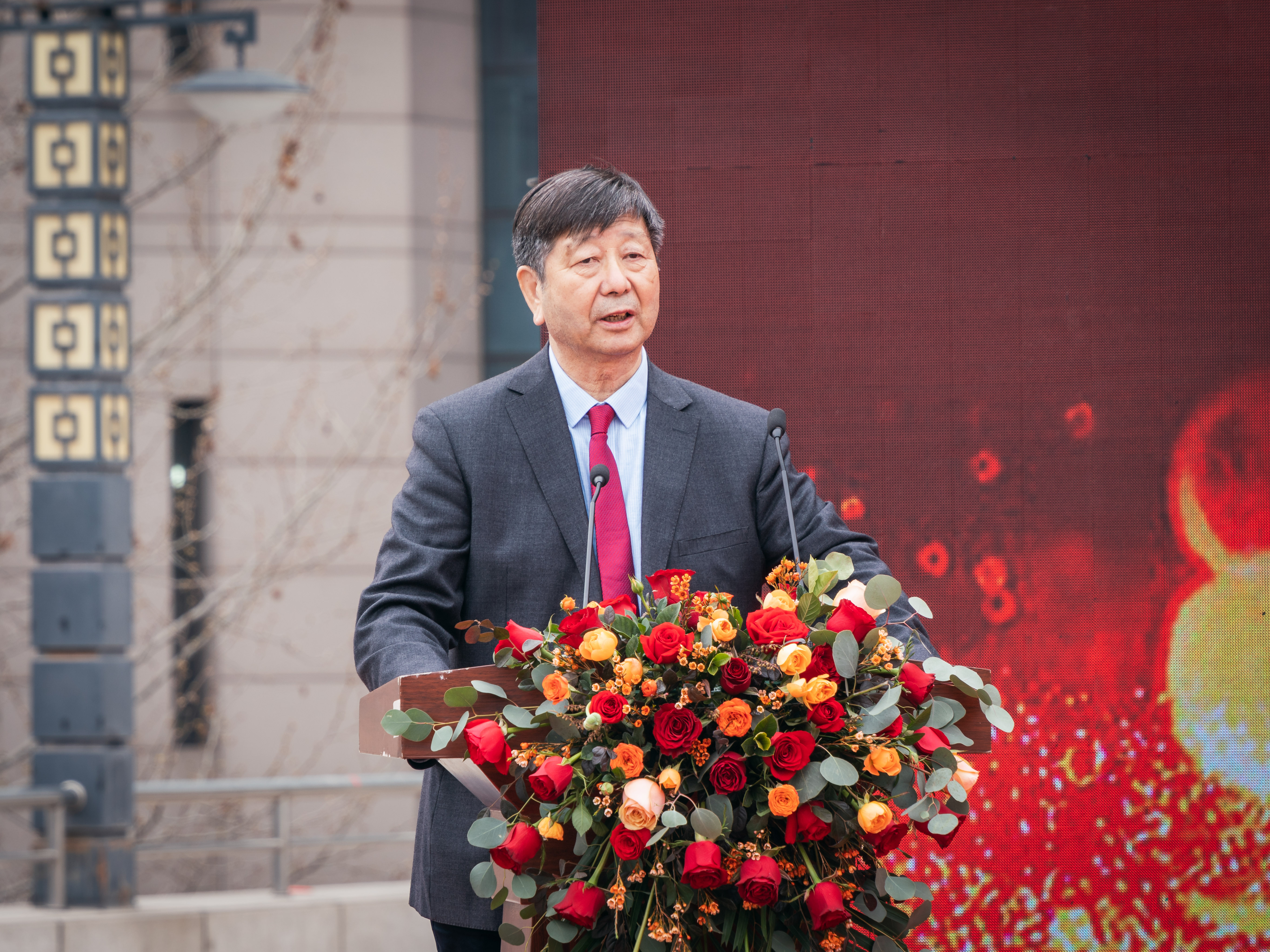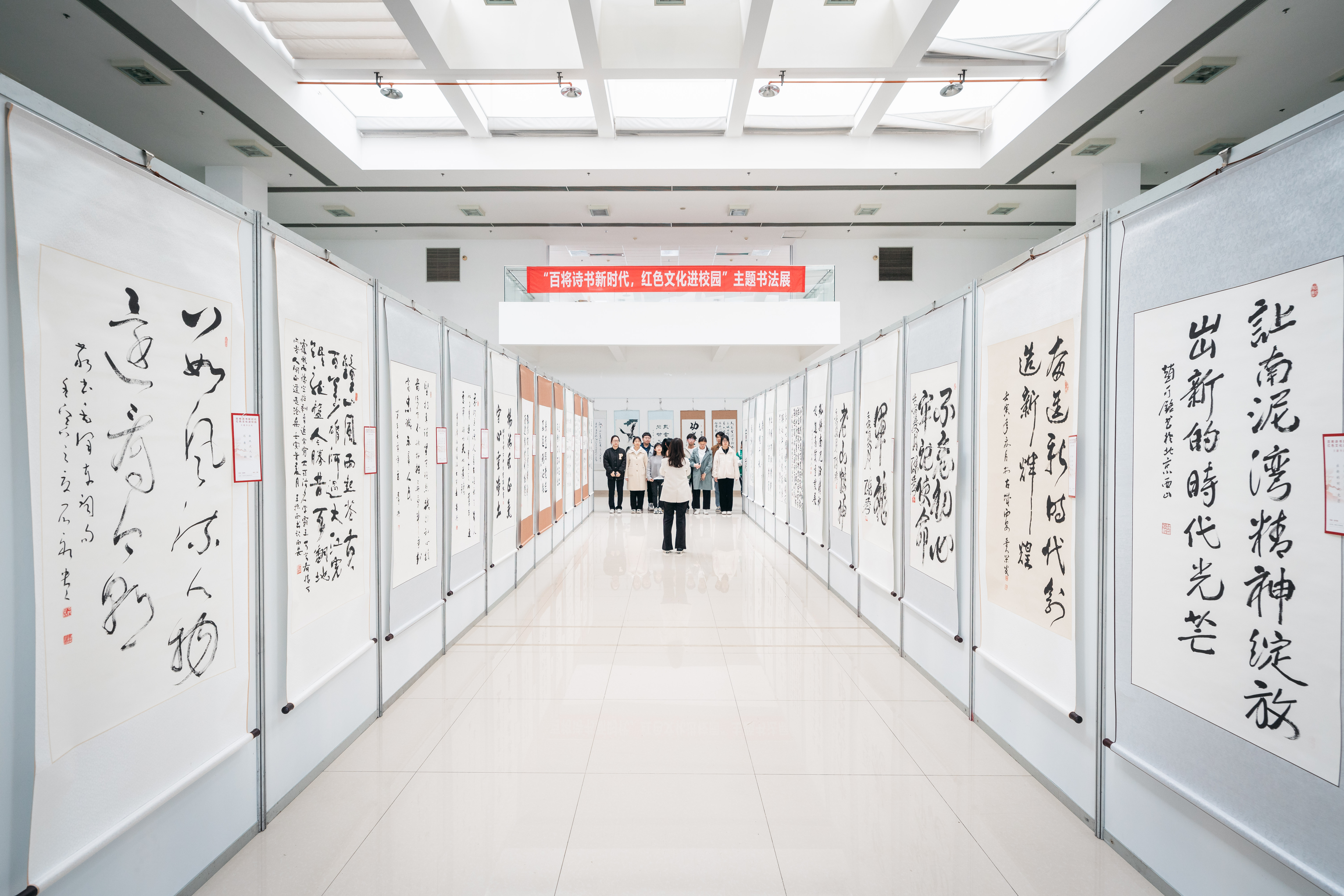 赵作纽在致辞中指出,此次书法展既是弘扬中华优秀传统文化的艺术盛宴,也是开展以爱国主义为核心的革命传统教育、国防教育的生动教材。学校将以这次活动为契机,进一步铭记红色历史、传承红色基因、弘扬革命精神,着力培养有人文情怀、社会责任、创新能力和国际视野,全面发展的现代化人才。