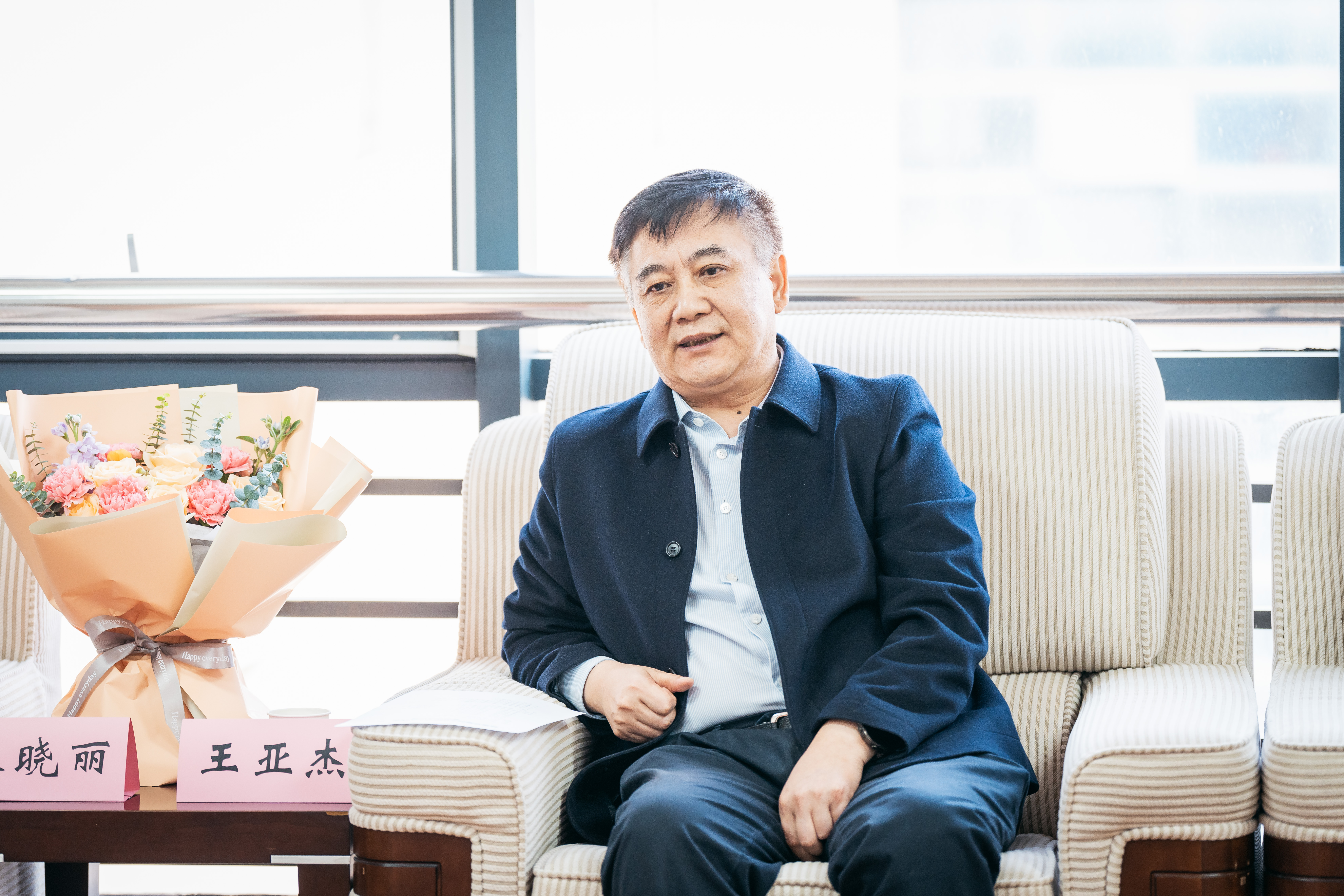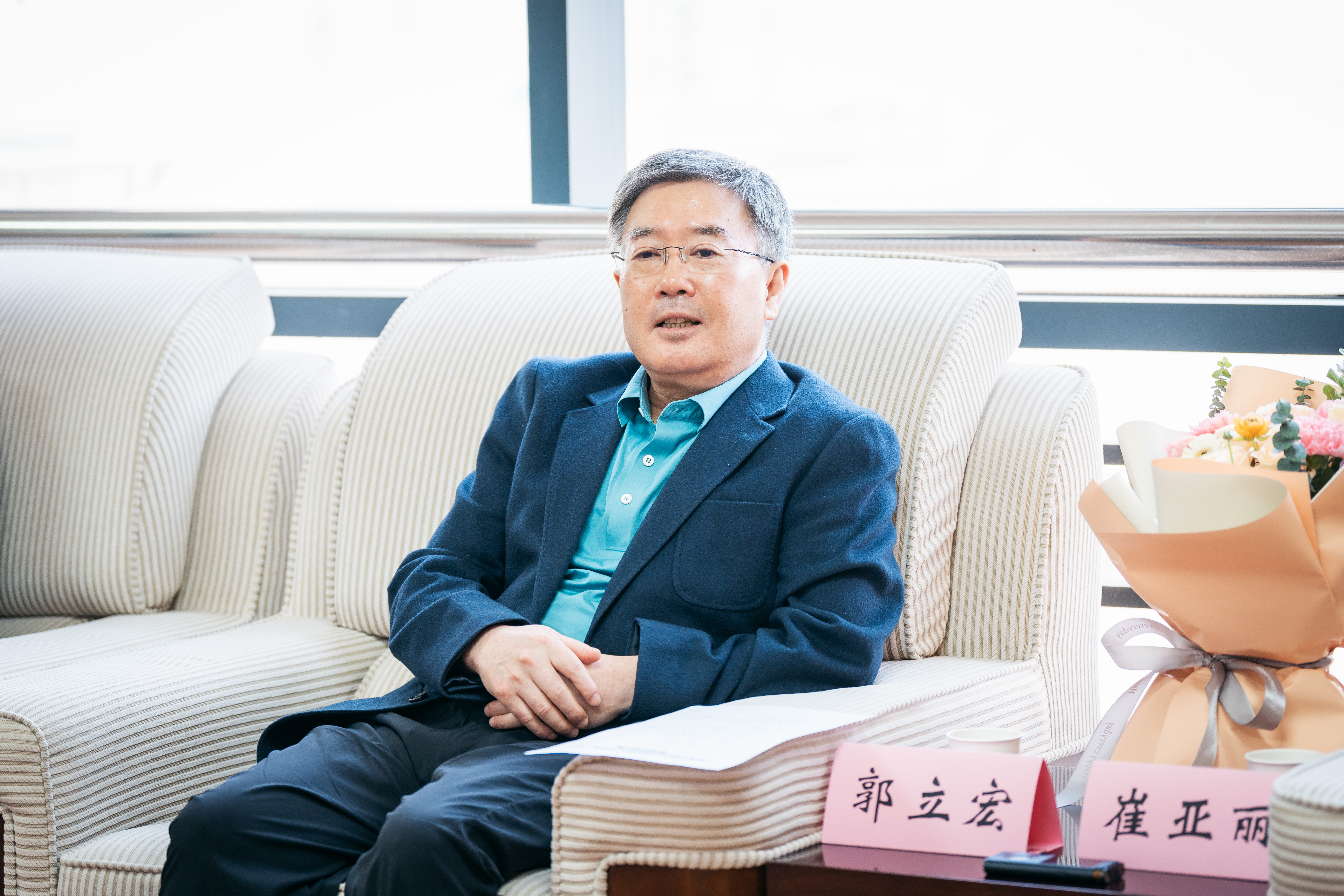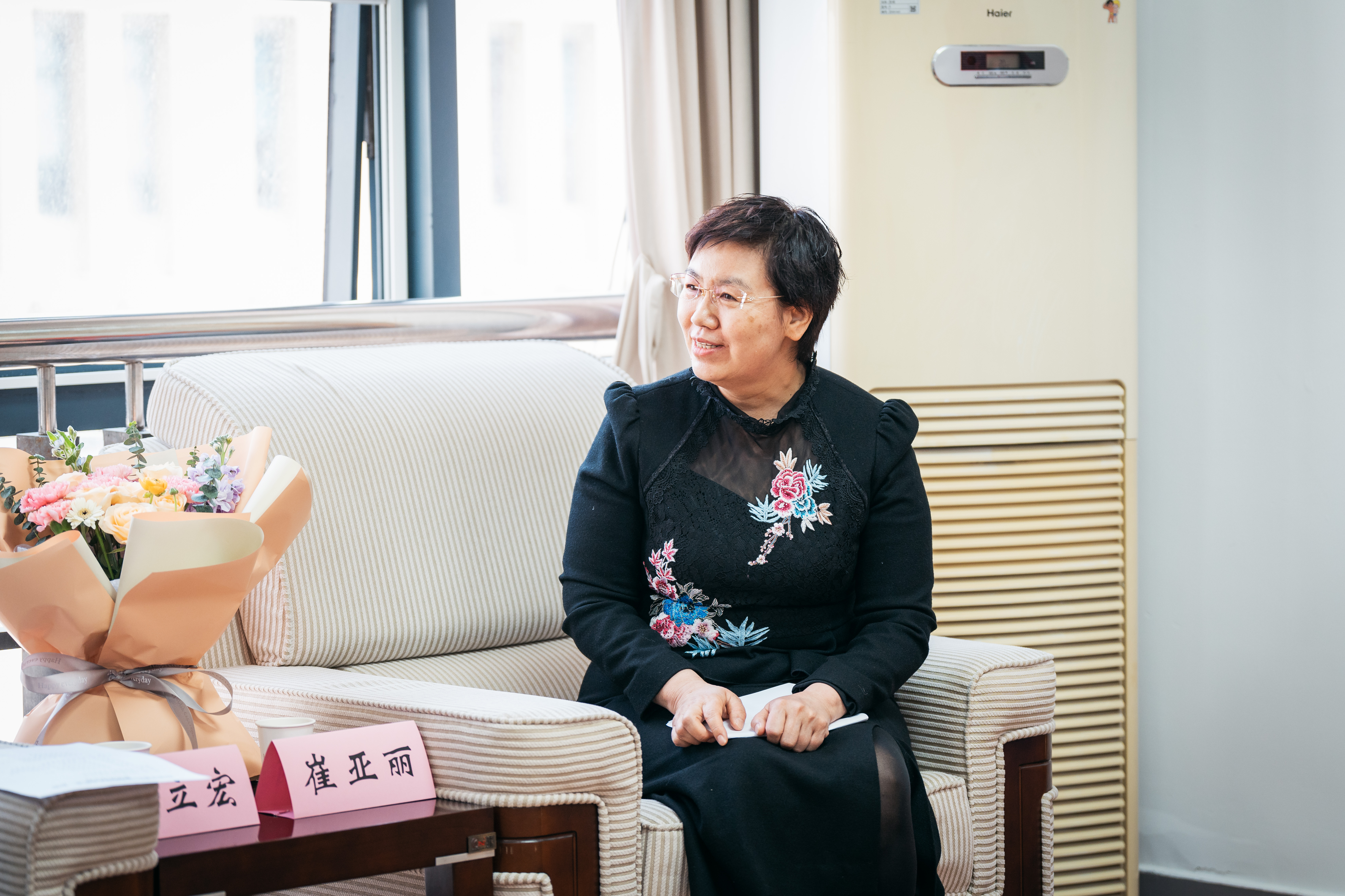 王亚杰、郭立宏向朱晓丽、崔亚丽教授赠送鲜花并合影留念,对她们分别当选第十四届全国人大代表和担任第十四届全国政协委员表示祝贺。