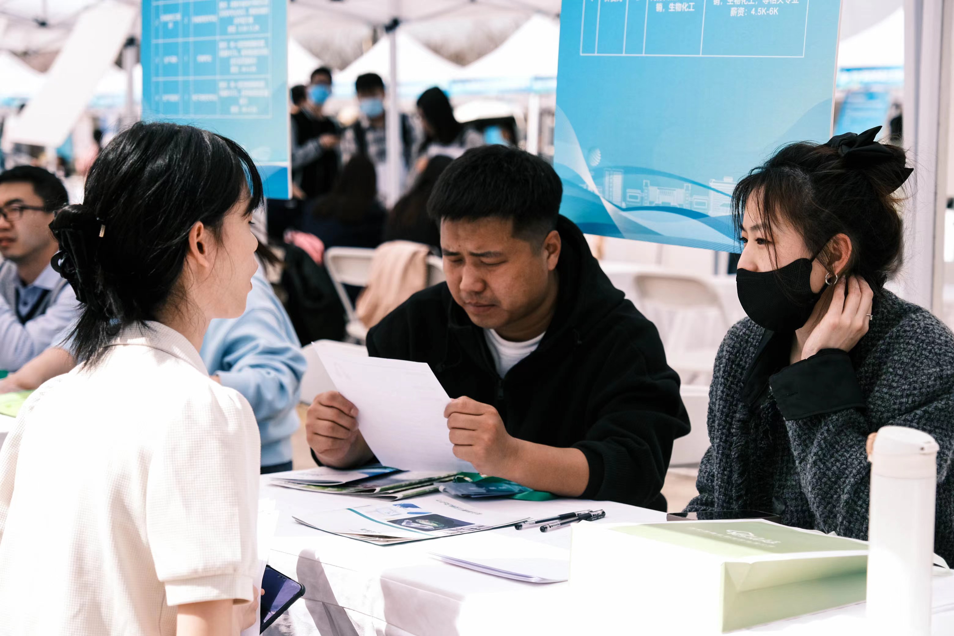 本次招聘会服务对象以2023届高校毕业生为重点,现场共吸引校内1000余人次、校外1500余人次应聘洽谈。会场设立“简历门诊”“春已破晓,启程山海”集章打卡等服务活动,全程助力毕业生求职。到场毕业生积极询问了解企业招聘流程及招聘岗位信息等情况,用人单位也主动向毕业生介绍招聘需求、发展前景及薪资福利等情况。参会企业共收到简历3000余份,约有300名毕业生初步达成签约意向。
