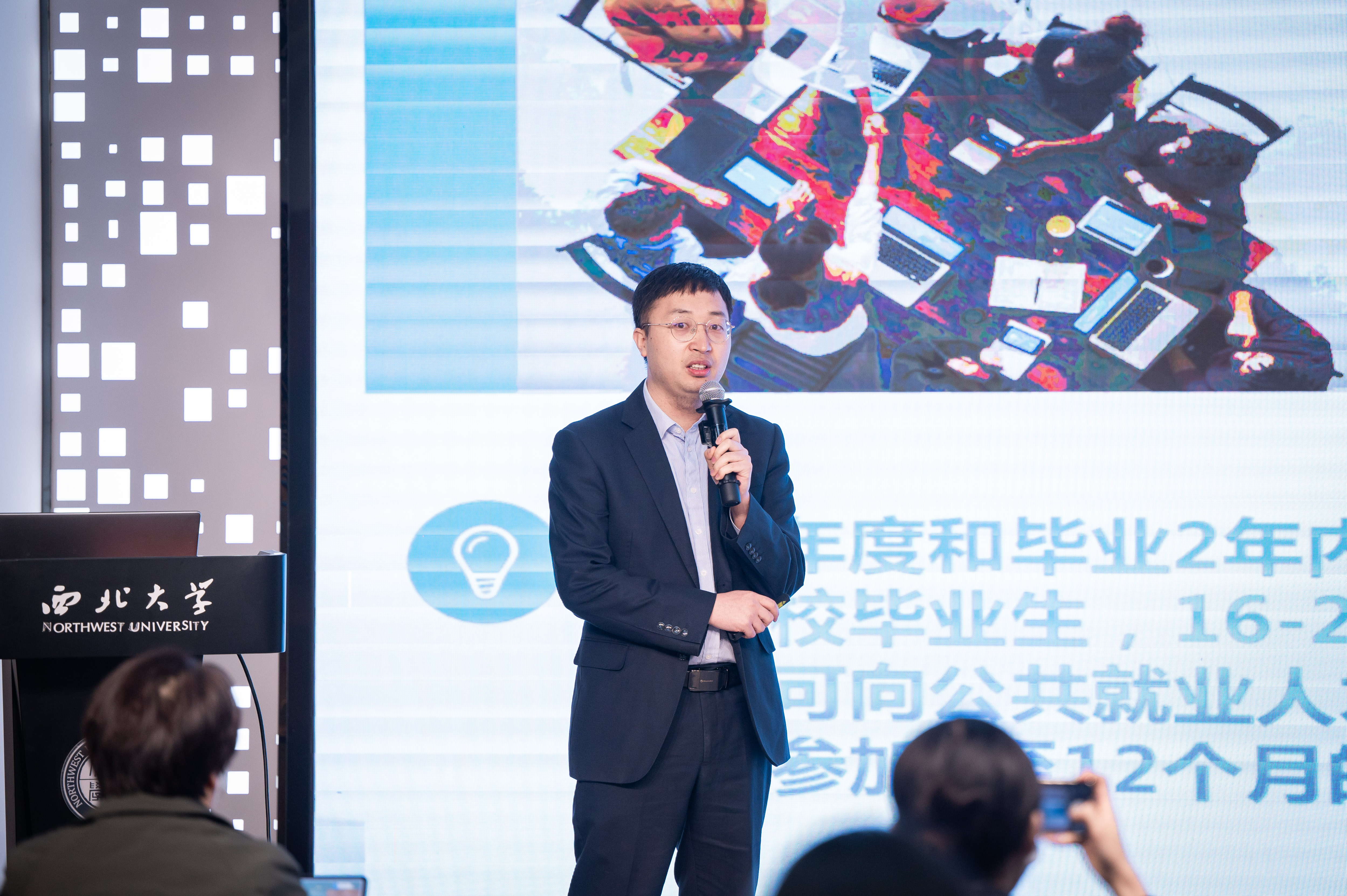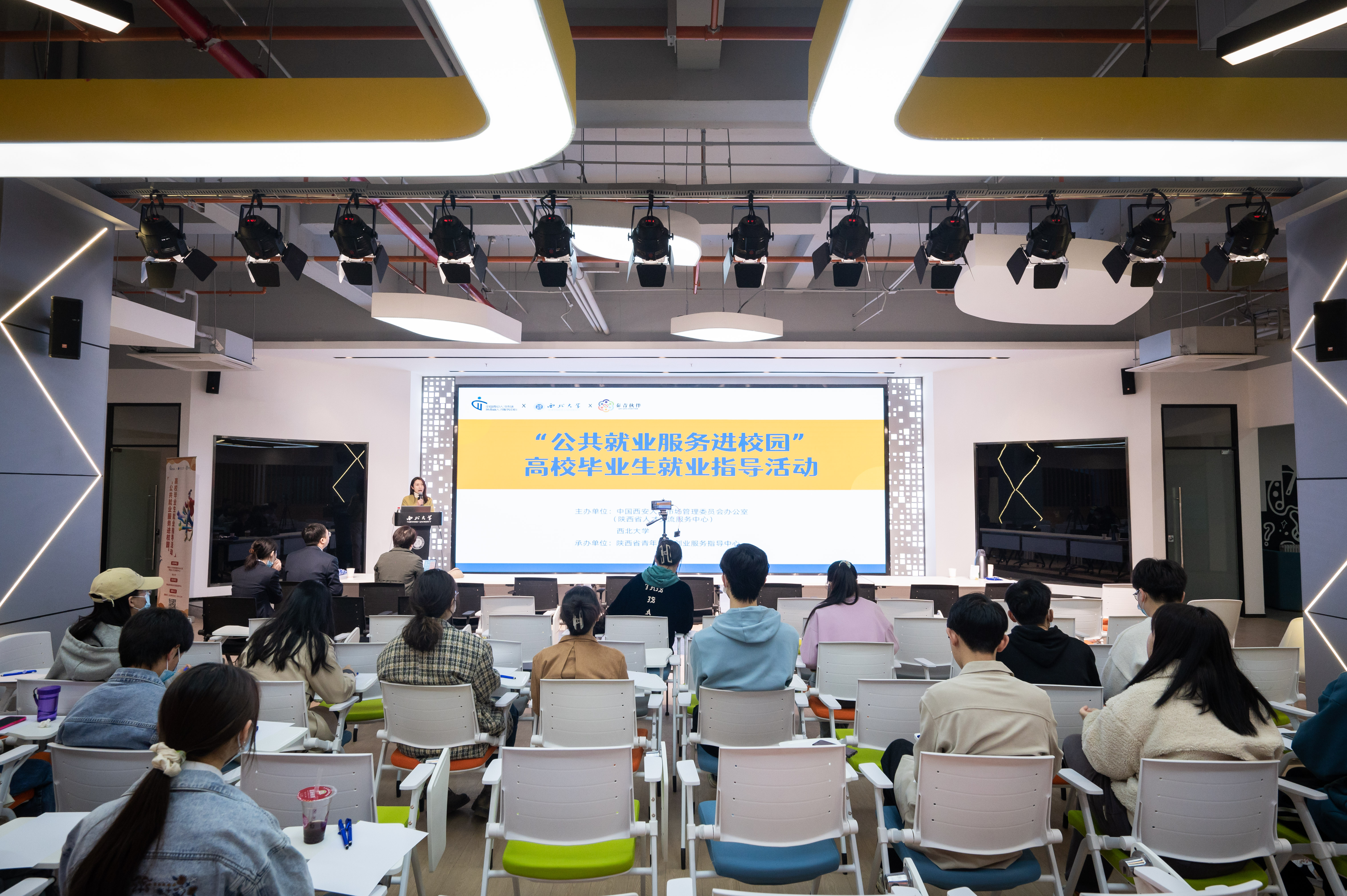 招聘会期间,beat365官网还联合陕西省人才交流服务中心组织开展了“公共服务进校园”高校毕业生就业指导活动,全力促进毕业生高质量充分就业。就业指导活动现场,范旭超副部长从就业见习、能力培训、求职创业、档案社保等方面详细介绍了省市两级部门相关人才政策和服务保障机制,并重点针对“三支一扶”“特岗教师”“西部计划”“选调生”“应征入伍”等基层政策性岗位招录和激励政策进行了详细解读。董研林副教授以《求职机会分析与目标定位》为题,结合学生生涯规划,从自身优势分析、行业发展趋势、资源挖掘与目标确定等方面指导学生明晰目标需求、把握时代特征、找准职业定位,为同学们带来一场生动、系统的就业指导课。