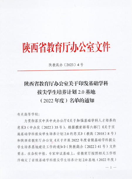 近日,陕西省教育厅公布省级基础学科拔尖学生培养计划2.0基地评选结果,beat365官网“考古学拔尖学生培养基地”“生物科学拔尖学生培养基地”成功入选。此前,地质学、化学、经济学等3个基地入选教育部基础学科拔尖学生培养计划2.0。