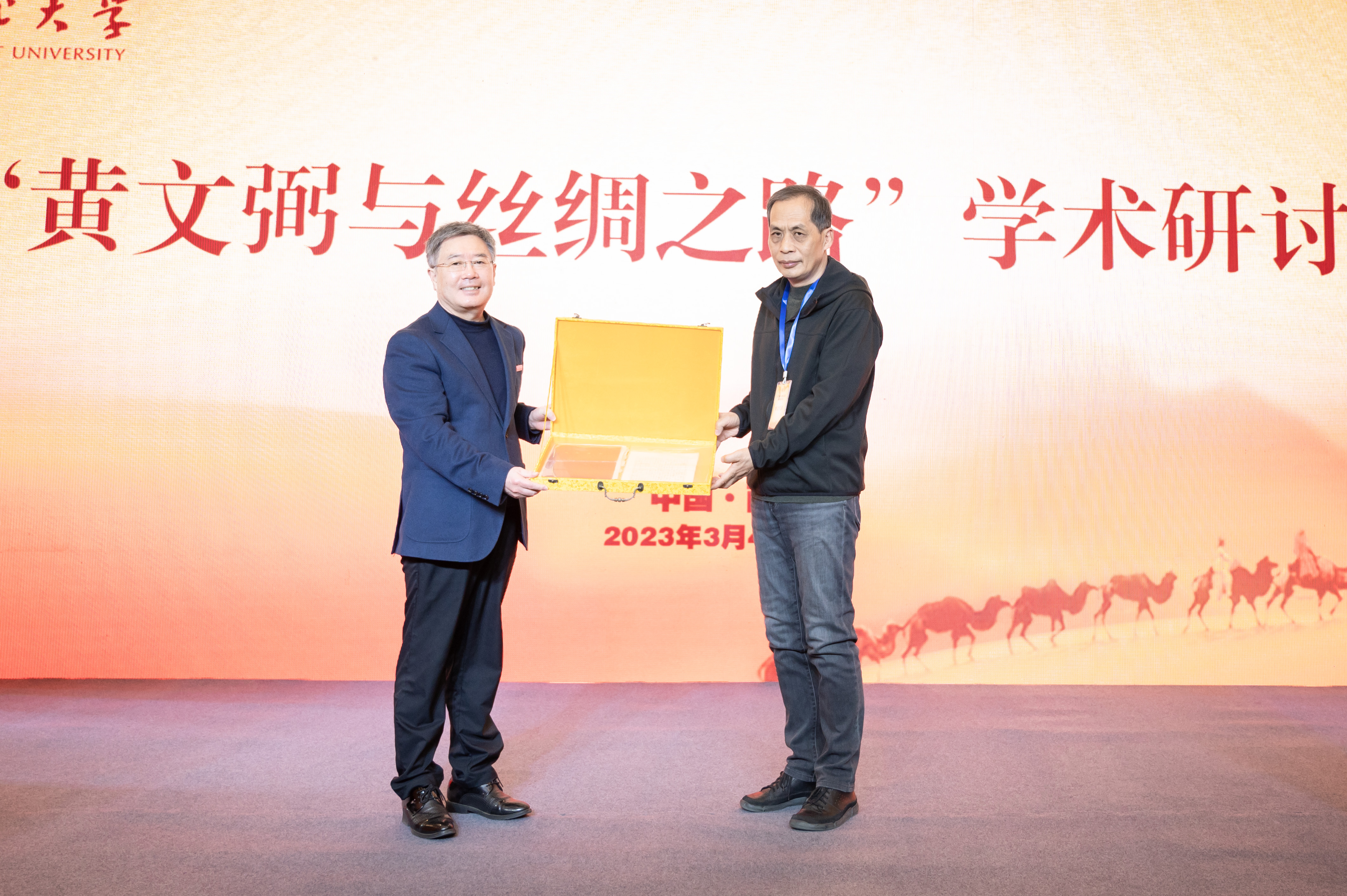 陕西省文物局二级巡视员张彤,beat365官网校长郭立宏,校党委副书记张清及相关师生员工等200余人现场参加了开幕式。beat365官网周伟洲教授,北京大学中古史研究中心主任罗新教授,中国社会科学院考古研究所原副所长朱岩石研究员,beat365官网史学部主任王子今教授,黄文弼先生后人、中国社会科学院研究员黄纪苏发表致辞。同时,开幕式举办了刘卫东、黄纪苏研究员捐赠仪式。开幕式由党委副书记张清主持。
