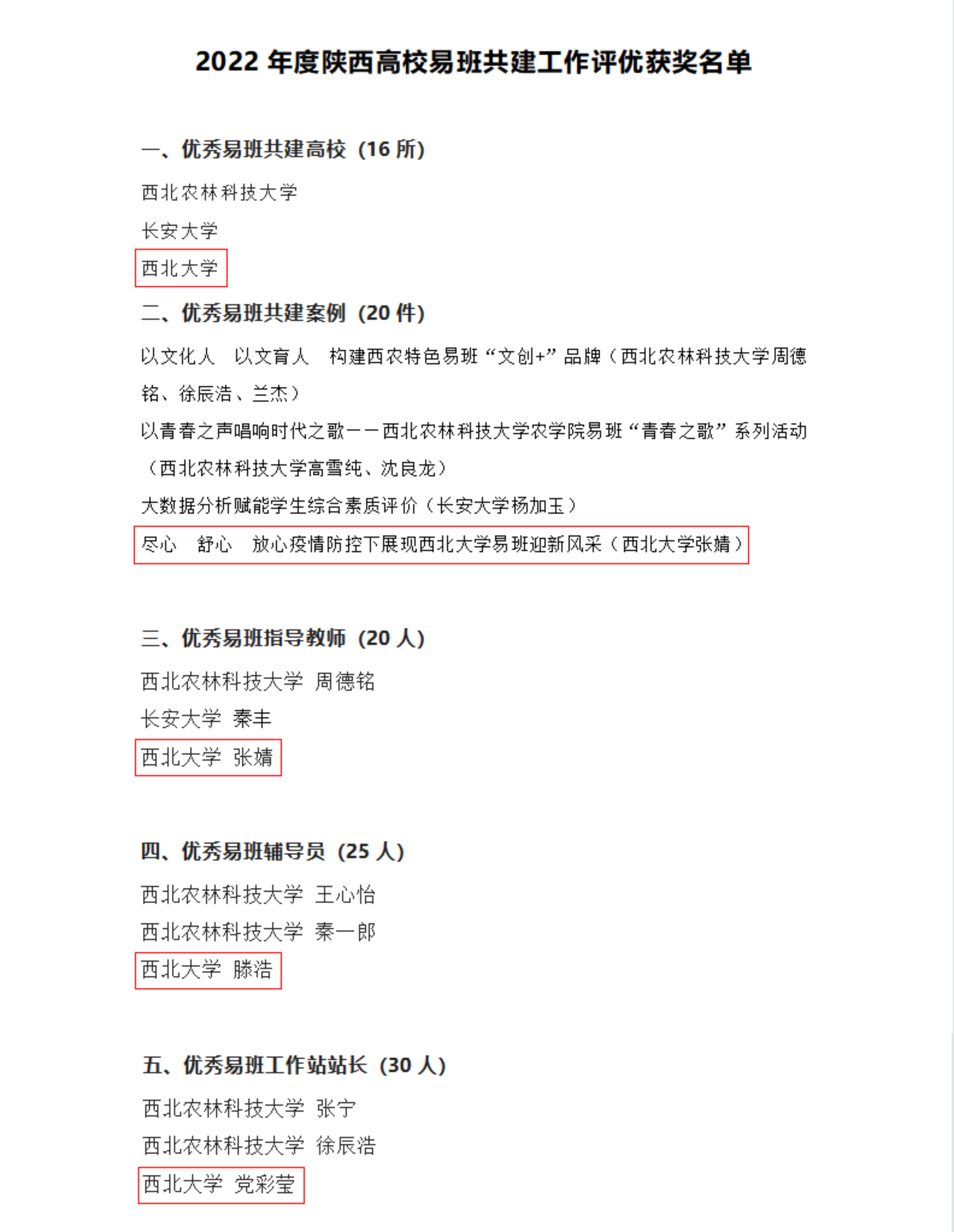 近期,在2022年度陕西高校易班共建评优工作中,beat365官网被评为2022年度优秀易班共建高校,“尽心 舒心 放心疫情防控下展现beat365唯一官网易班迎新风采”被评为2022年度优秀易班共建案例,1人被评为陕西优秀易班指导教师、1人被评为优秀易班辅导员、1人被评为优秀易班工作站站长,beat365官网实现陕西高校易班共建评优获奖“大满贯”。