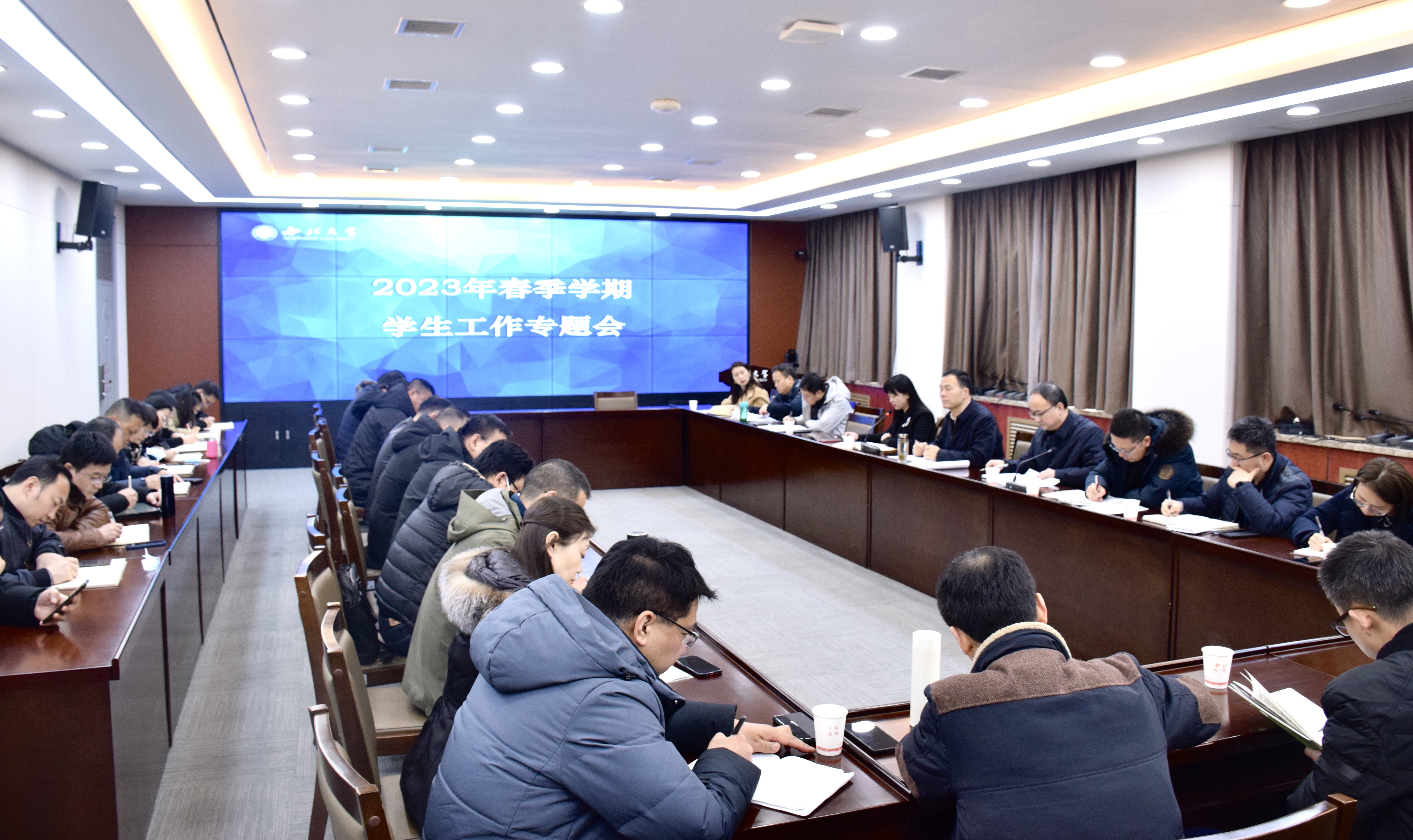 2月17日下午,beat365官网2023年春季学期学生工作专题会在长安校区召开。校党委副书记吕建荣主持会议,学工部、研工部、校团委负责人,各院(系)学生工作负责人参加了会议。